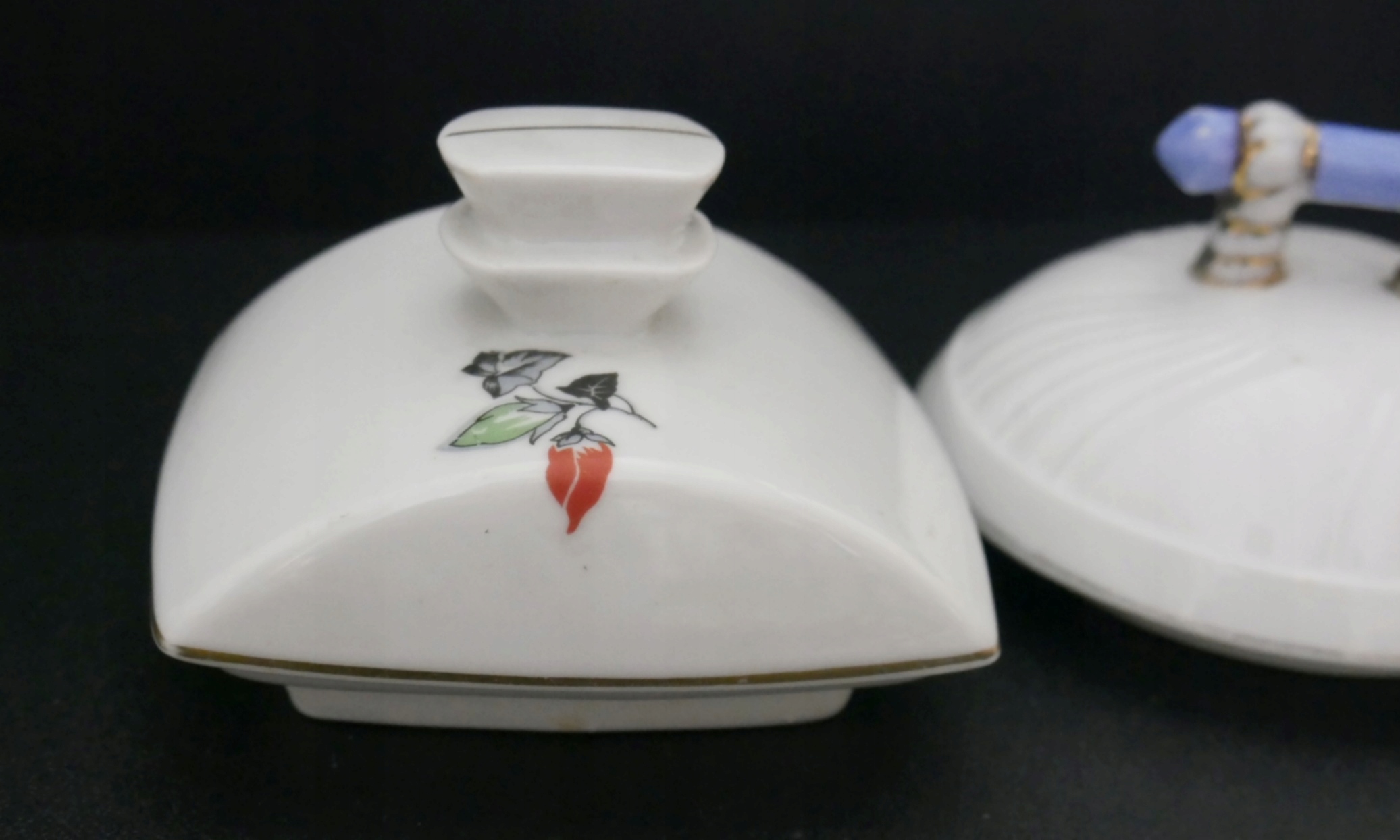 2 кришки, одна від «плоскої» цукорниці у Чмієлова, менший глечик, інша від старого глечика