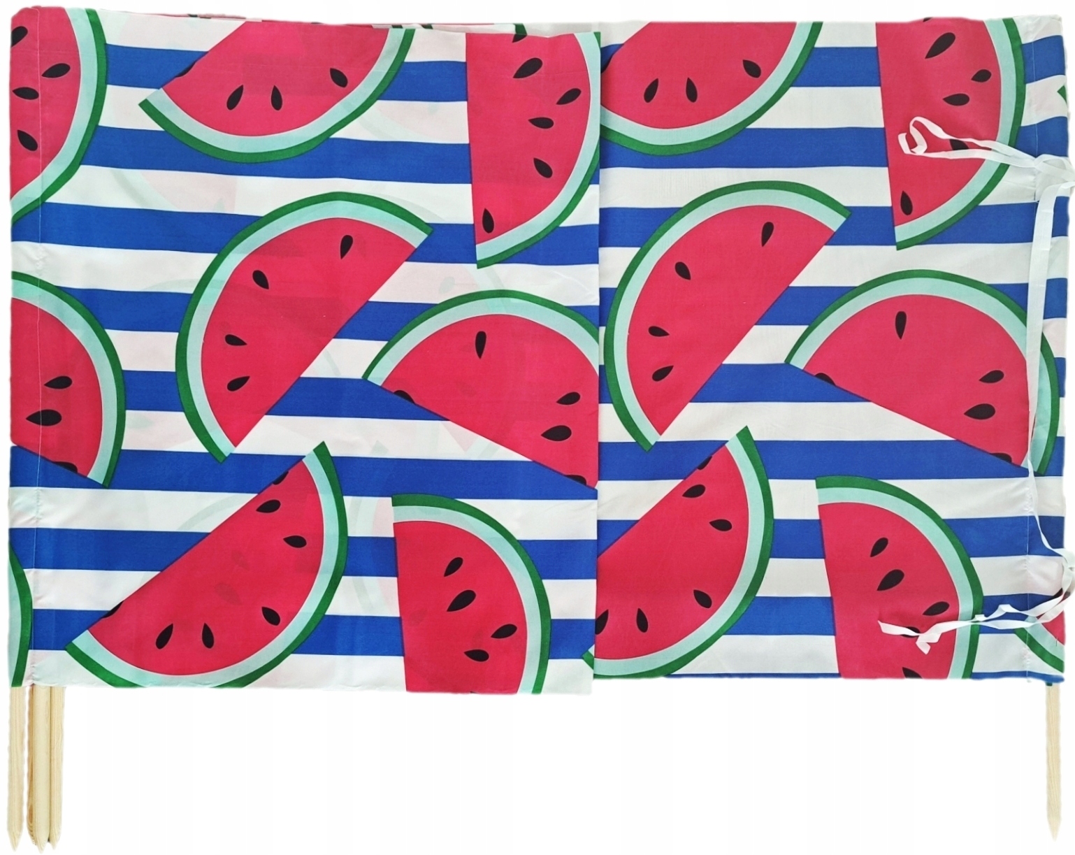 Екран має пришитну стрічку, яку можна носити на плечі та рядки, щоб зв’язати після прокатки.