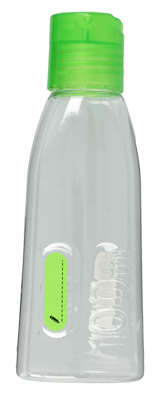 Пляшка з високоякісного безбарвного пластику з кришкою, ємністю 100 мл. Прес-застібка ідеально підходить для всіх типів рідин, які ми видавлюємо на руки, таких як всі види молочків, гелів, бальзамів. Пляшка, призначена для розливу рідких продуктів, необхідних нам під час подорожі літаком, де ми не можемо взяти з собою всю фірмову упаковку, яка перевищує 100 мл. А також для ряду інших ситуацій, коли нам не потрібна величезна фабрична упаковка.