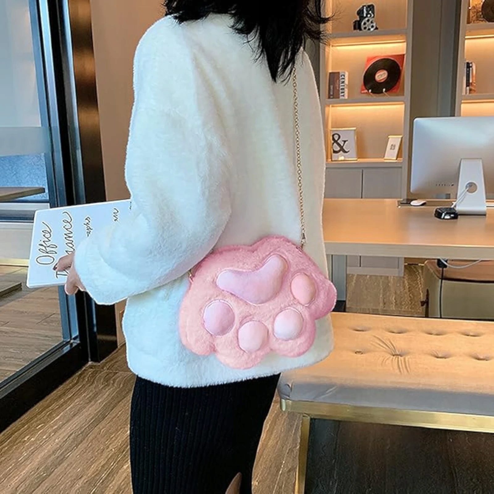 Сумка була зроблена з м'якого, приємного до сенсорного матеріалу, який схожий на справжню котячу лапу! Сірий хутро з рожевими подушками додає її чарівності і ускладнює його протистояти. Ідеально підходить для шанувальників Kawaii, Cosplay та солодких аксесуарів!