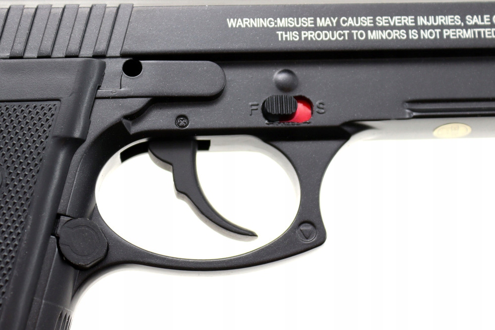 З правого боку пістолета є запобіжник фіксатора спускового гачка.Все це дуже гарно і міцно зроблено з металу.
