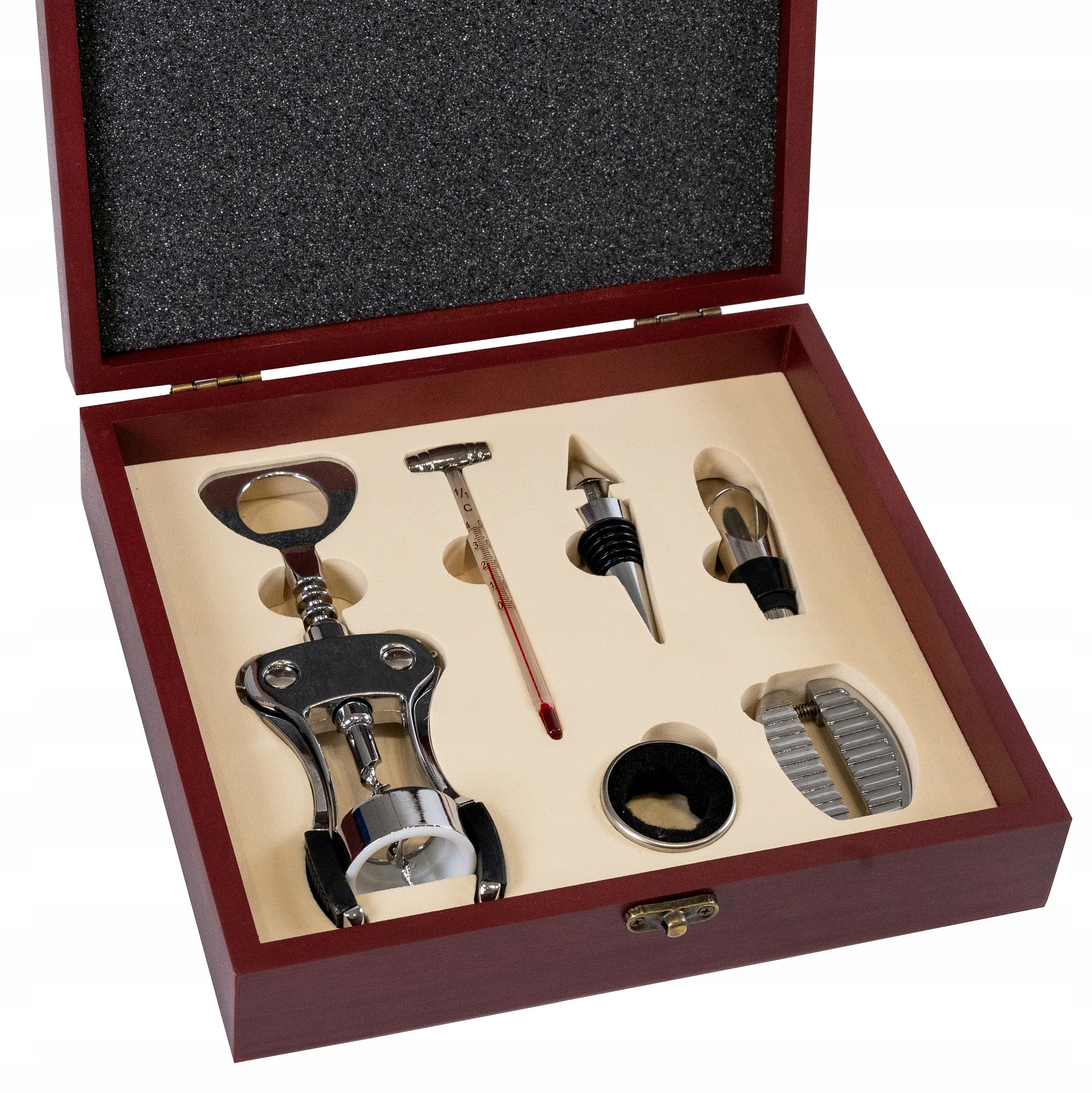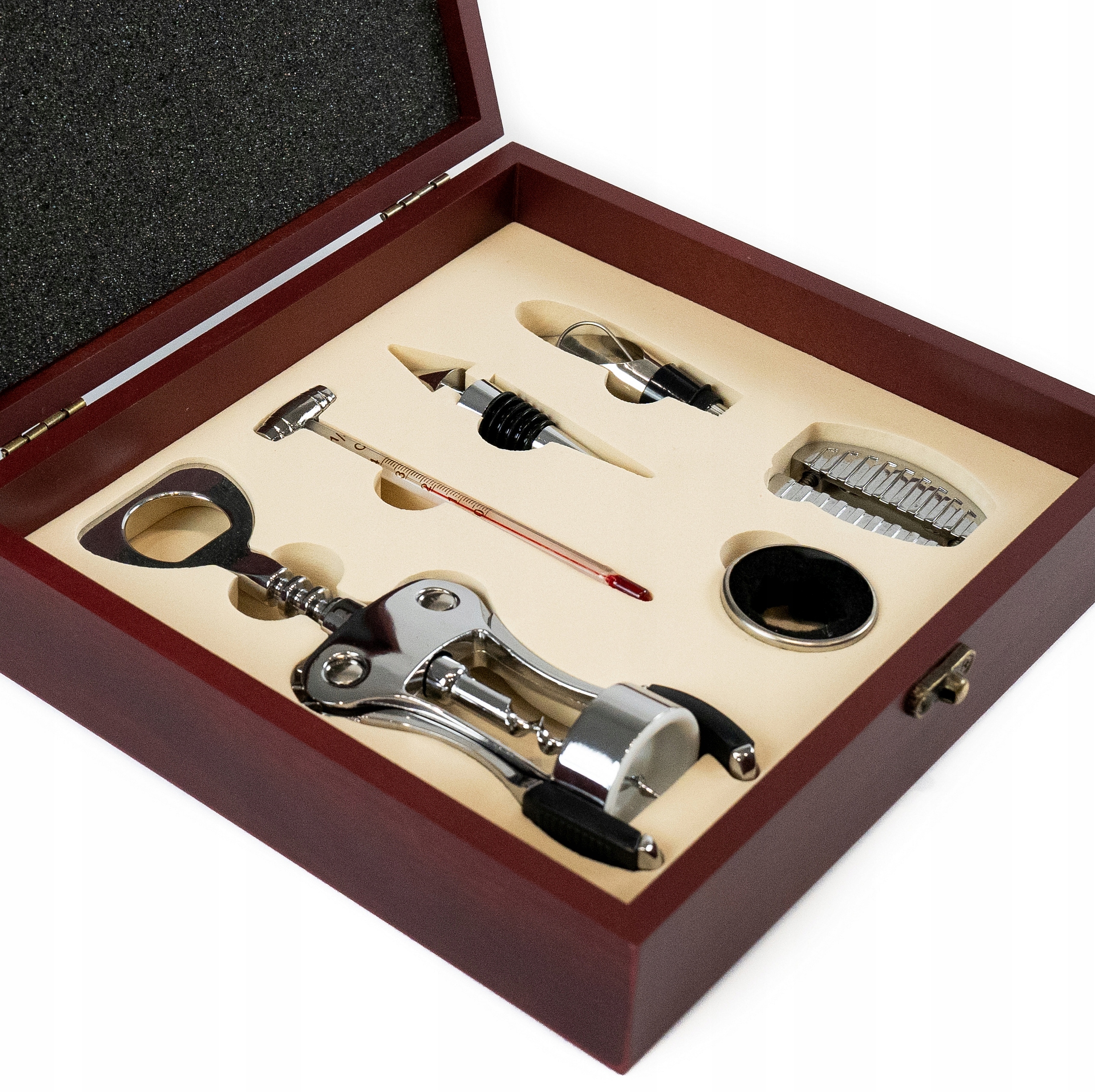 До переваг використання цього набору можна віднести не тільки зручність, але й можливість професійної подачі напою - від легкого відкриття пляшки, через розливання без розливання, до підтримки відповідної температури.