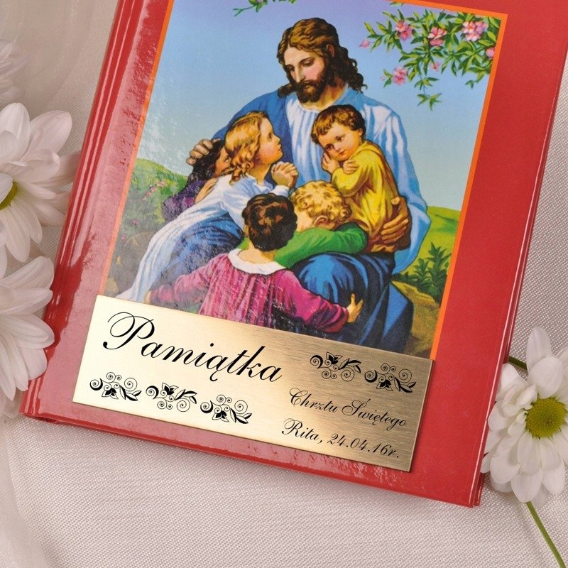 Таблиця з вигравіруваним мотивом і написом На обкладинку наклеєно «Сувенір» «Святе Хрещення» та ім'я дитини та дату хрещення.