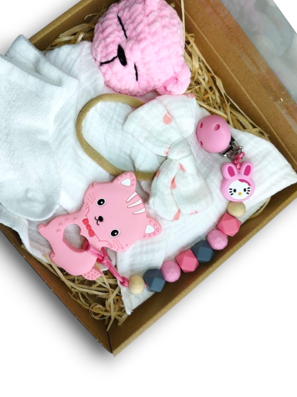 Our boxes packed in an elegant box perfect for the first gift, birth of a child, babyshower