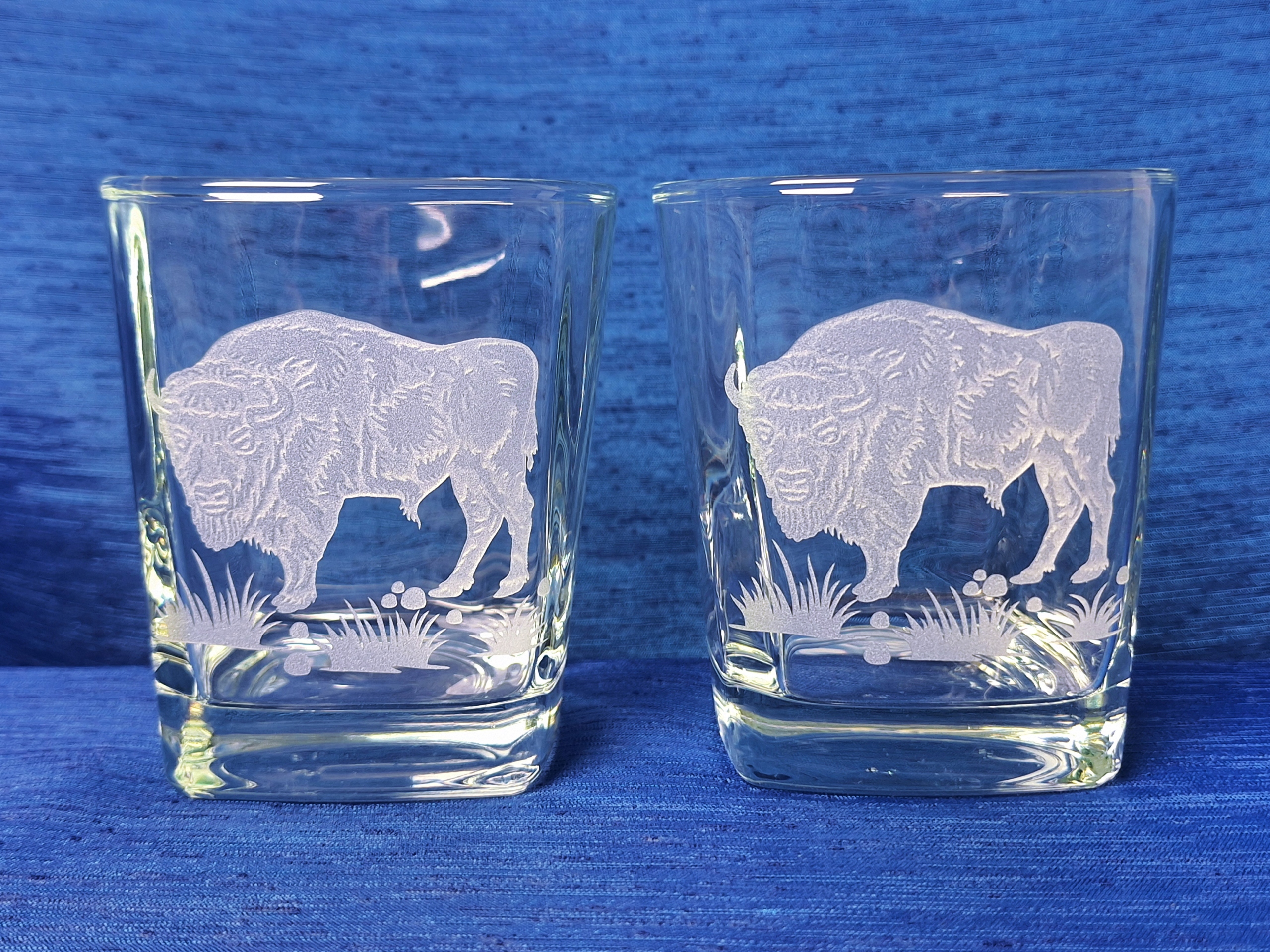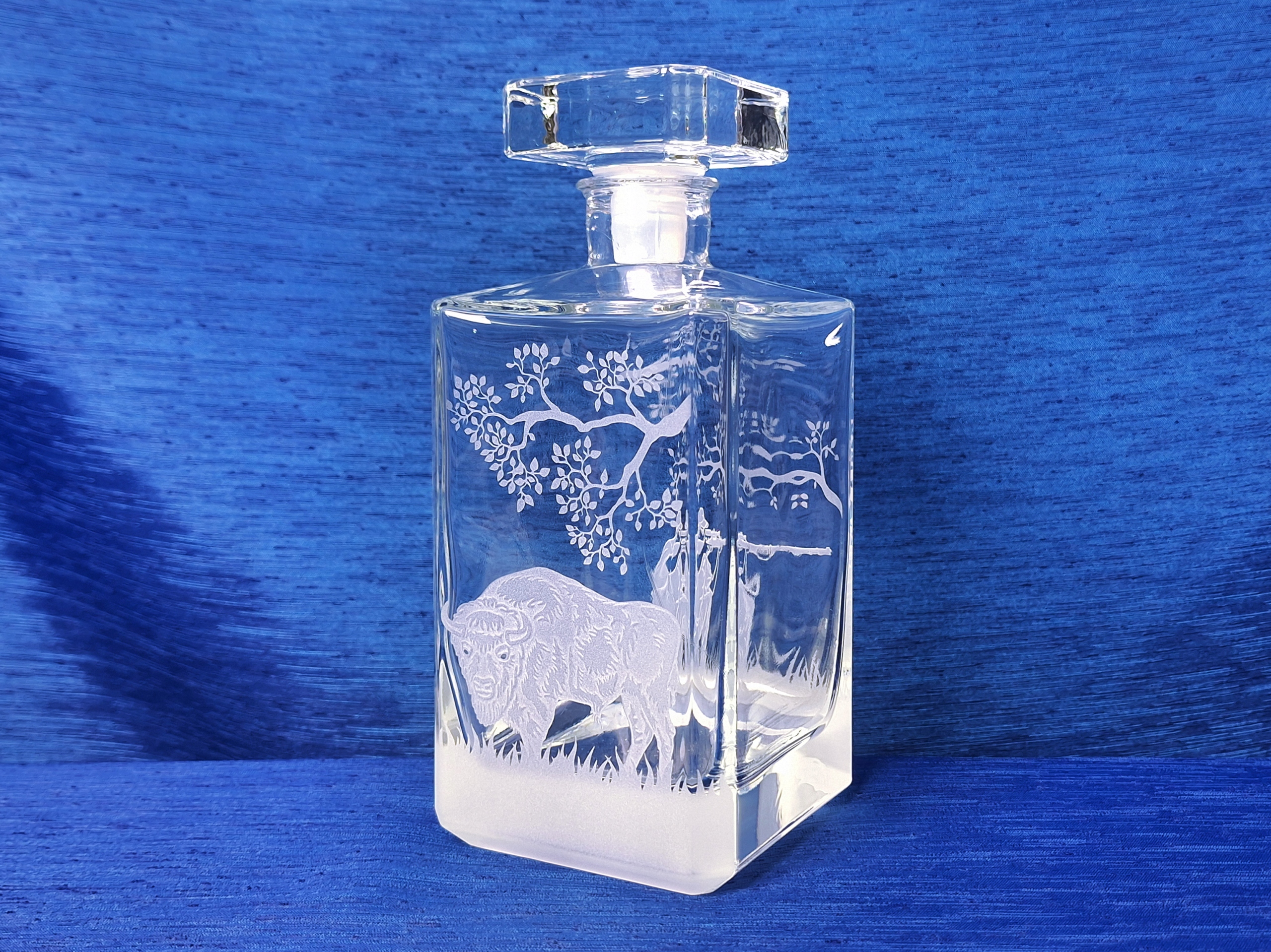 У набір входить 2 келихи для віскі. прикрашений мотивом бізона та декорованим графином.