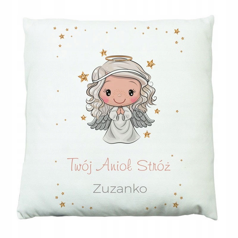 Чудовий подарунок на народження, хрещення та рік дитини у вигляді індивідуальної подушки. Цей унікальний подарунок прикрашений чарівним ангелом та ім'ям дитини. Подушка має гіпоалергенний наповнювач, що робить її безпечною для малюків.