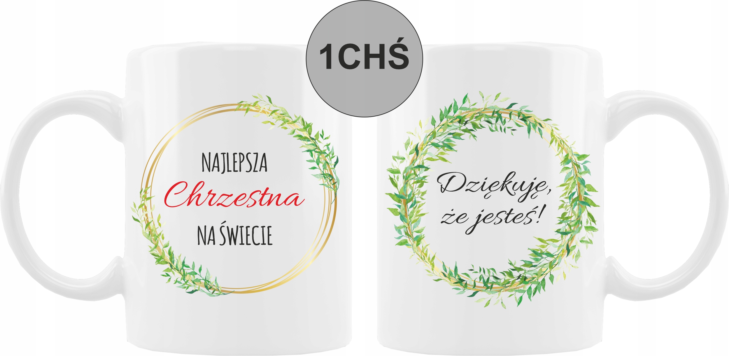Друк на кухлі є постійним (для теми 1CHŚ - Найкраща хрещена мати у світі, дякую, що ти є!, для теми 2CHŚ - найкраща хрещена мати у світі, дякую, що ти є!) і не можна змінити.