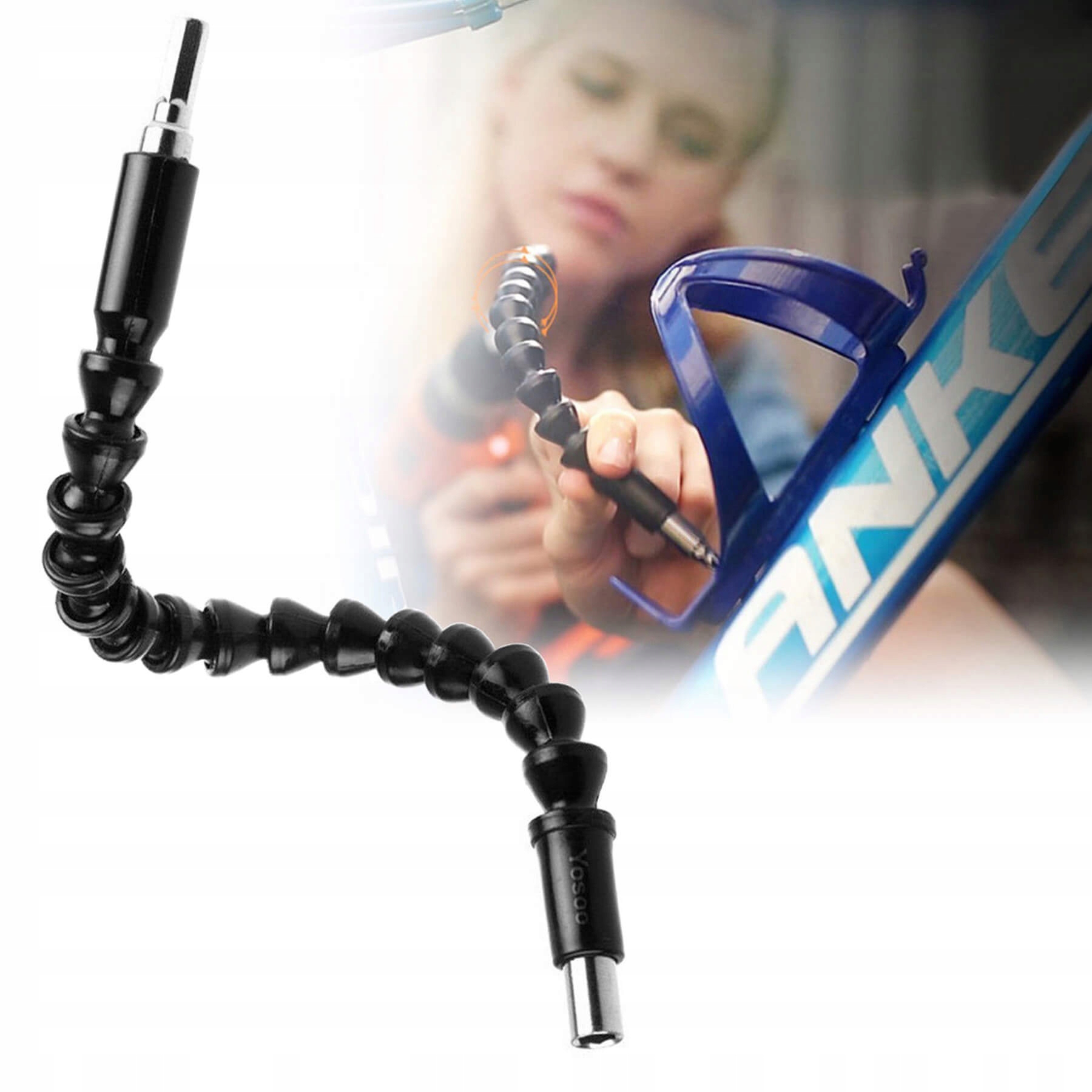Якщо ви знайшли важкодоступне місце і вам потрібно просвердлити там гвинт, а ваша викрутка просто не може до нього дістатися. Це розширення допоможе вам у цьому! Подовжувач має контури, які легко згинаються під різними кутами, дозволяючи дістатися до найбільш важкодоступних місць. Подовжувач може працювати навіть під кутом 180 градусів.