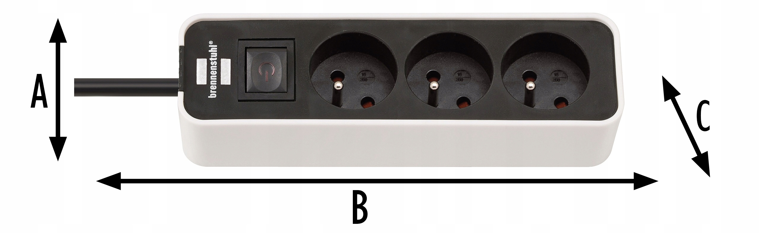 Подовжувач живленняEcolor від BRENNENSTHUL зтрьома розеткамипід кутом 45° ікабелем 1,5 метра.