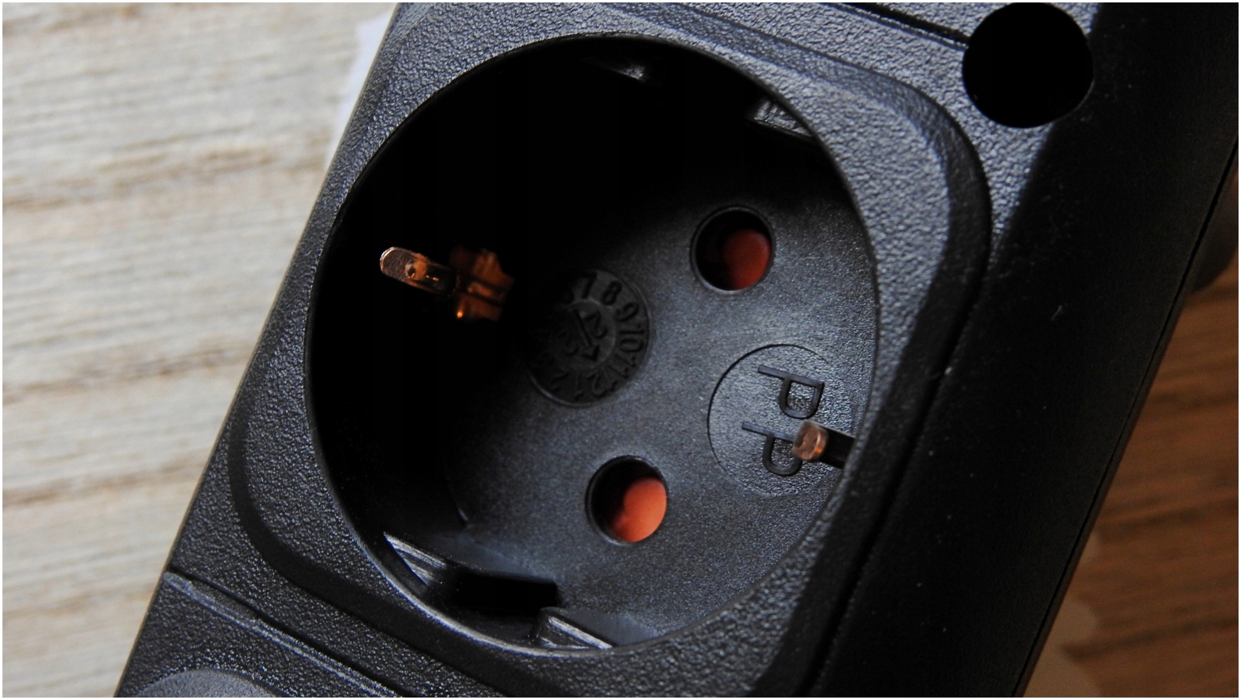 Подовжувач також монтується, що означає, що ви можете повісити його на стіні, під столом або де завгодно. Крім того, має підвищений захист контактів - червоні вилки в розетках.