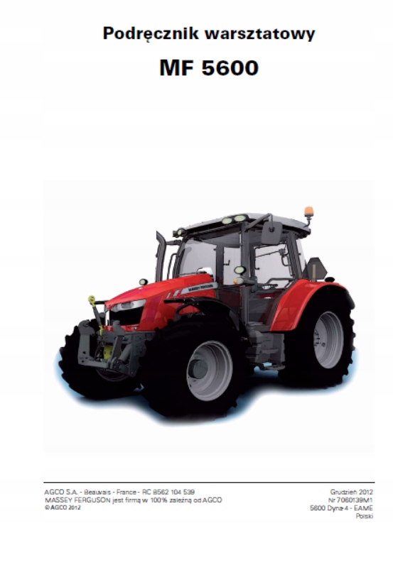 Podręcznik warsztatowy MF 5600 5608 5609 5610 MASSEY FERGUSON
