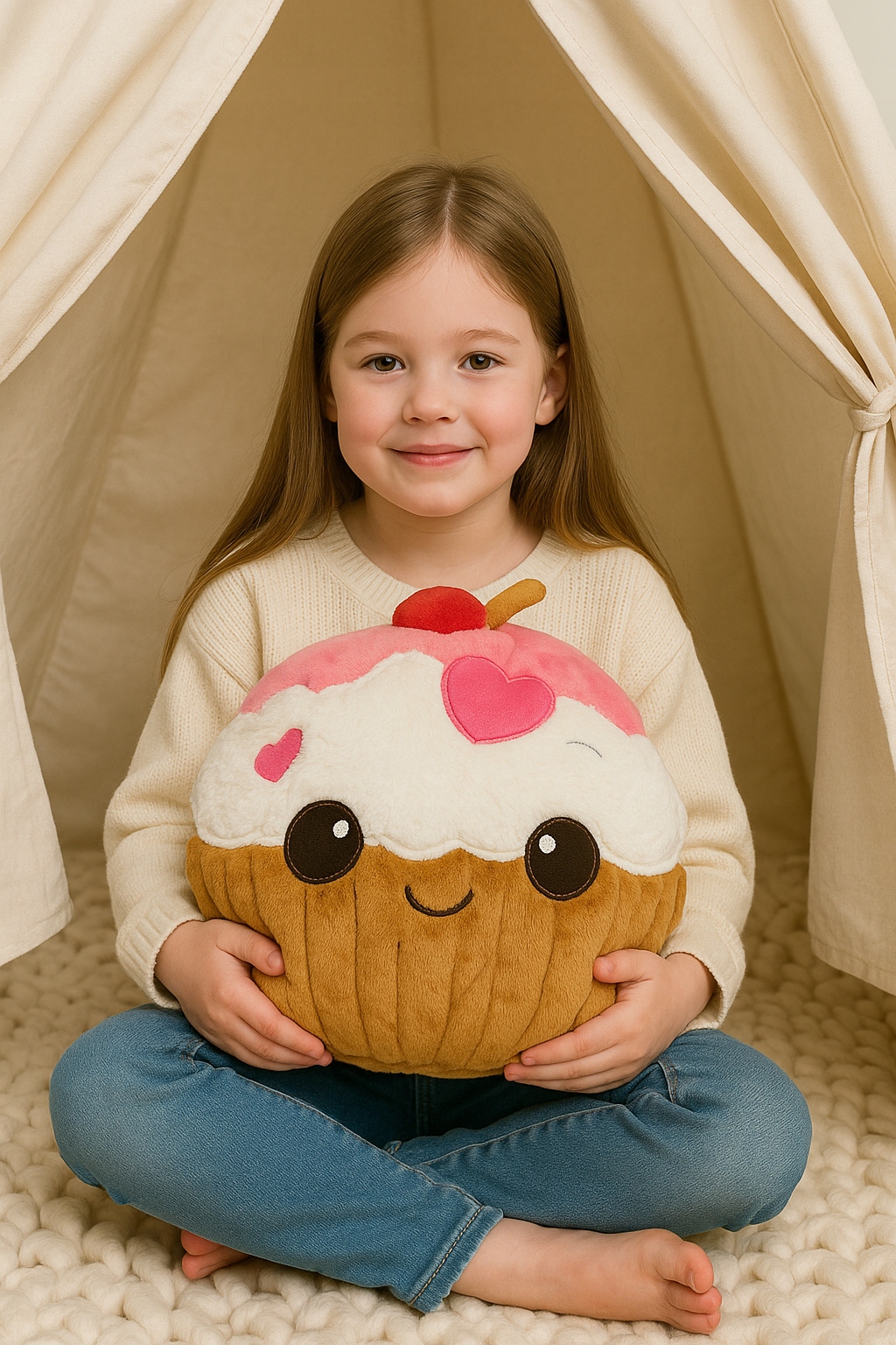 барвиста подушка у формі солодкого кексу - чудова ідея для подарунка для дітей, які люблять приємні та ... солодощі!