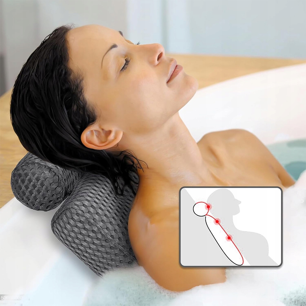 Унікальна двокомпонентна подушка для ванни підходить для будь-якої форми ванни. Гнучко пристосовується до краю ванни, ідеально підтримує голову, шию і спину, розслабляє м'язи після дня втоми. Це ідеальне доповнення до вашої ванної кімнати та ідеальний подарунок для вашої родини та друзів.