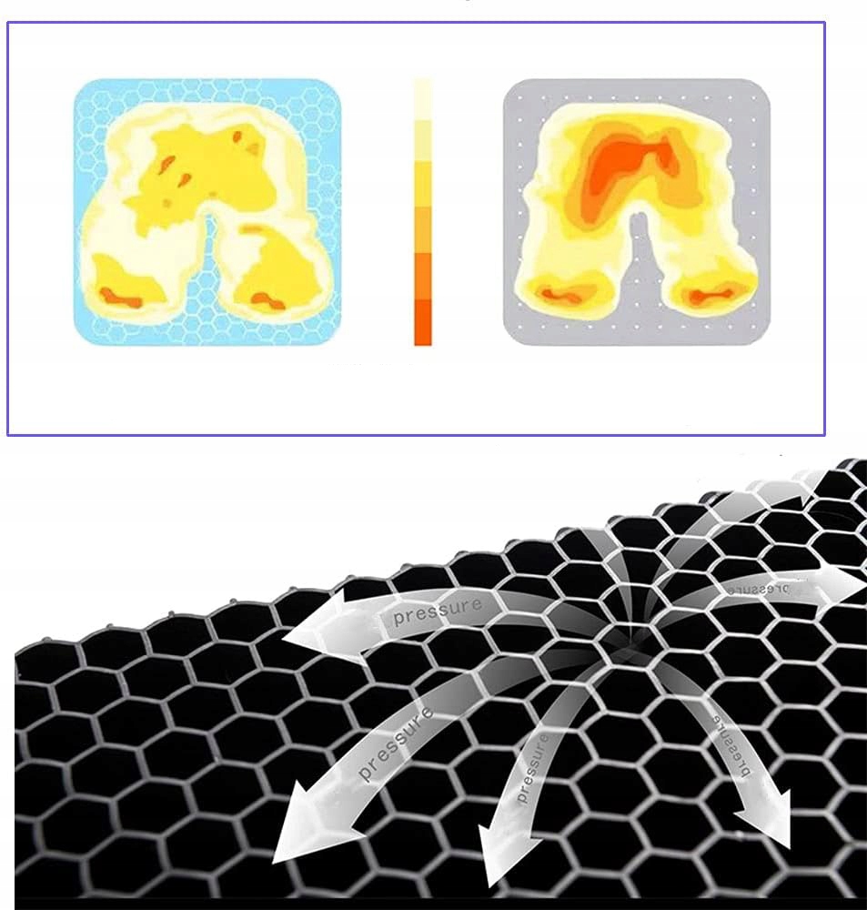 ressive 【Велика і товста гелева подушка】 Ця гелева подушка для довгих сидінь спеціально розроблена як велика і товста, розмір подушки сидіння - 44 * 37 * 3,5 см, більший і товстий, ніж більшість інших гелевих панелей. Подушка сидіння виготовлена з стільникової конструкції, яка значно зменшує передачу тепла між стегном і сидінням, збільшує циркуляцію повітря та підтримує прохолоду сидячого способу життя, виготовляється з дуже гнучкого полімерного матеріалу, двошарової структури, більш м'якої, кращої еластичності та розсіювання тепла. Біль, яку ви заслуговуєте】 Наша гелева подушка ідеальна, щоб допомогти у болі нижньої частини спини, сідничного нерва, куски, обстрілу, сідниць та стегна. Наша подушка для сидіння має ергономічну структуру, яка допомагає уникнути оніміння сідниць та поперекового напруги.