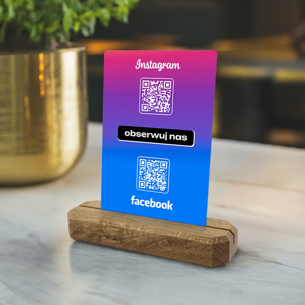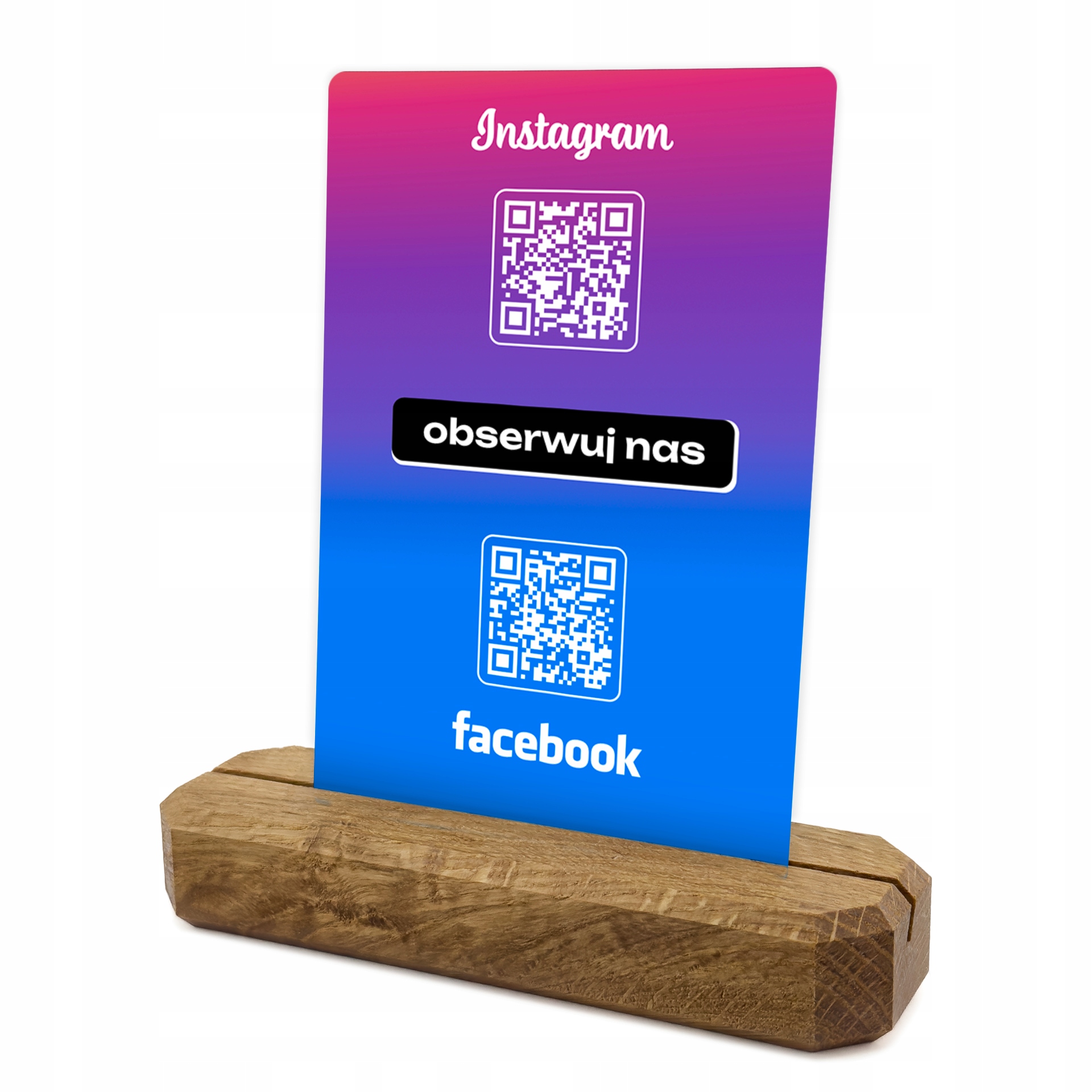 Картка з подвійним QR-кодом на твердій дубові підставки була створена для всіх тих, хто хоче динамічно розвивати свою присутність у соціальних мережах та дозволити потенційним клієнтам швидко охопити власних клієнтів.