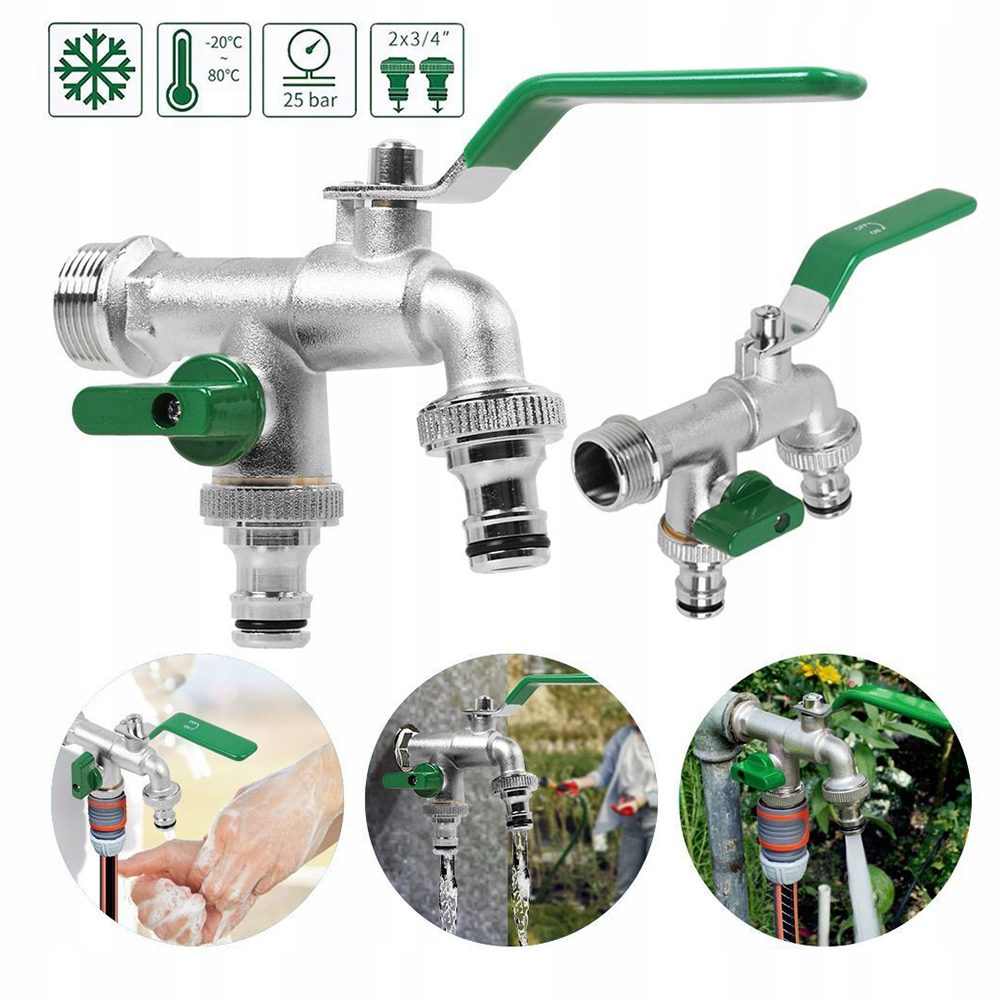 Подвійний 1/2 дюймовий зливний кран, латунний кран з виходом 2 х 3/4 дюйма
