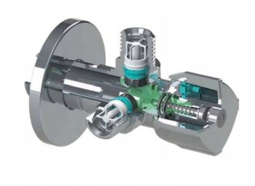 Високоякісний клапан ідеально підходить для підключення двох пристроїв в одній точці. Обидва пристрої закриваються незалежно після вибору відповідного положення ручки.Відповідне налаштування ручки дозволяє відкривати або закривати один або обидва виходи. Завдяки запатентованій системі «click», ручка встановлюється в чотирьох положеннях, точно відкриваючи або закриваючи відповідний прохід. Елемент, що закриває і відкриває потік води, виконано за технологією ANTI-CAL, яка захищає від впливу накипу, що значно подовжує надійність роботи клапана. Додатковою перевагою клапана є металева ручка.