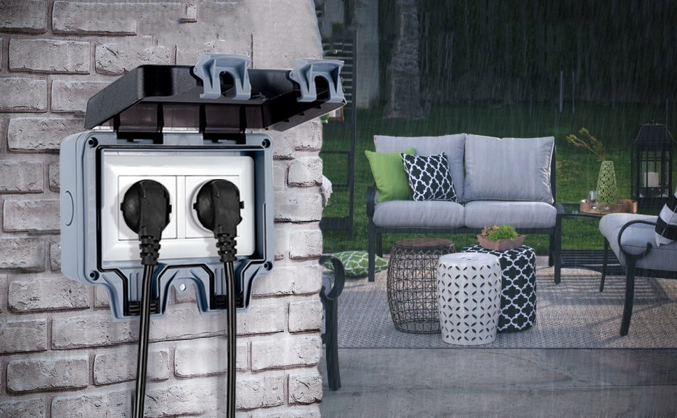 ⏩IP66 означає водостійкість; Прокладка запобігає проникненню води та захищає від пилу. Завдяки цим розеткам ви можете легко та безпечно принести електроенергію у свою зовнішню зону. Стінова розетка заблокована, що запобігає відкриттю банки сторонами. Зовнішня розетка стійка до будь -яких погодних умов і забезпечує тривалу довговічність. Обкладинка захищає гнізда від атмосферних факторів. Кришка захищена пряжками, щоб запобігти проникненню води та пилу. Щоб захистити дітей від небезпеки, завжди закрийте кришку, незалежно від того, ввімкнено чи вимкнено живлення.
