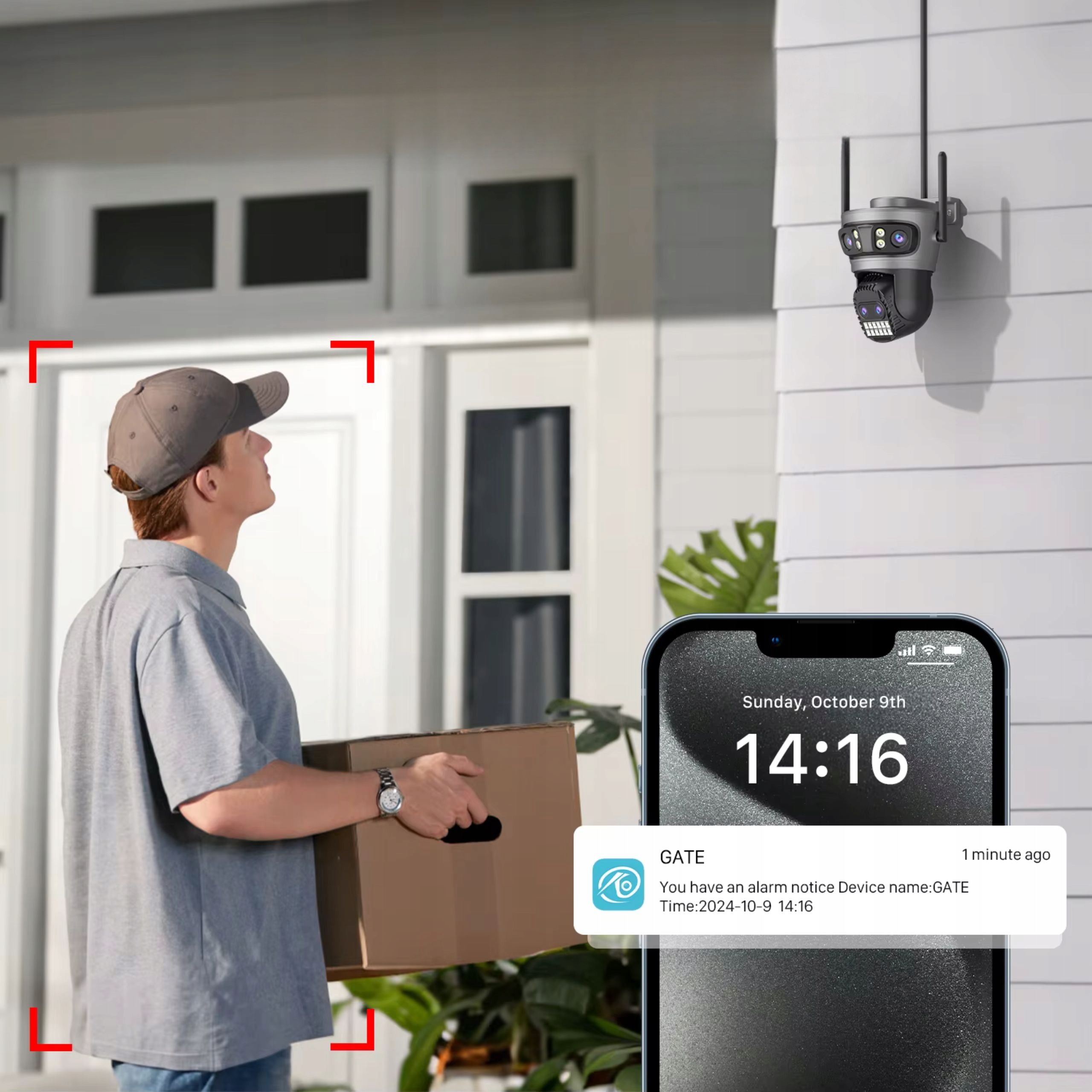 Подвійний Wi -Fi IP -камера Зовнішня розумна обертова QHD 4x 5MP Zoom Application