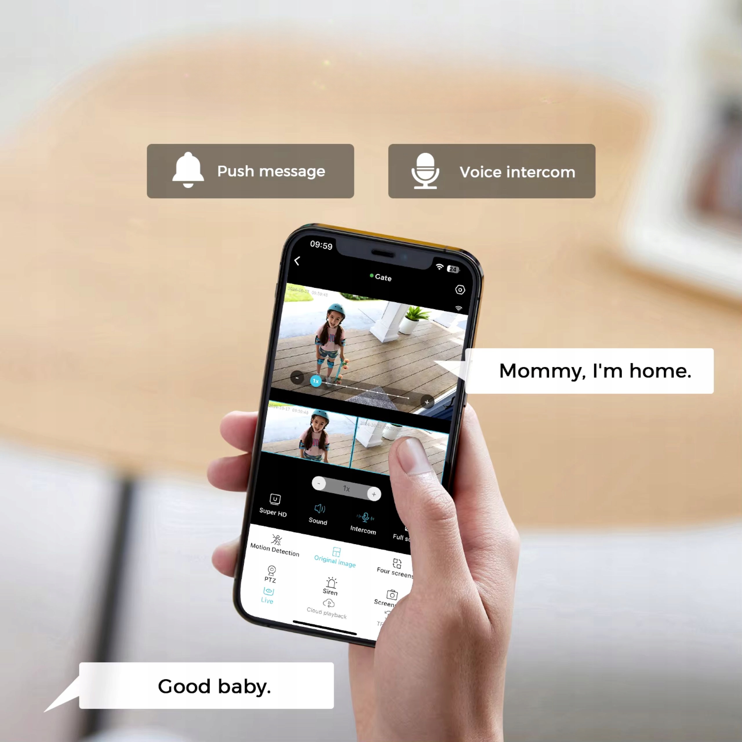 Камера має вбудований мікрофон і динамік, завдяки якому ви можете щось сказати людині, що стоїть біля камери, і навпаки.