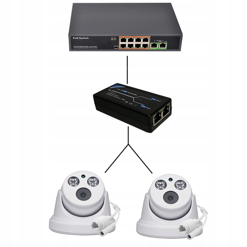 2-портовий розширювач PoE може передавати живлення Ethernet і PoE для 1 кінцевого пристрою на вхід Кабель Cat5, Cat5e, Cat6, Cat6e, UTP.