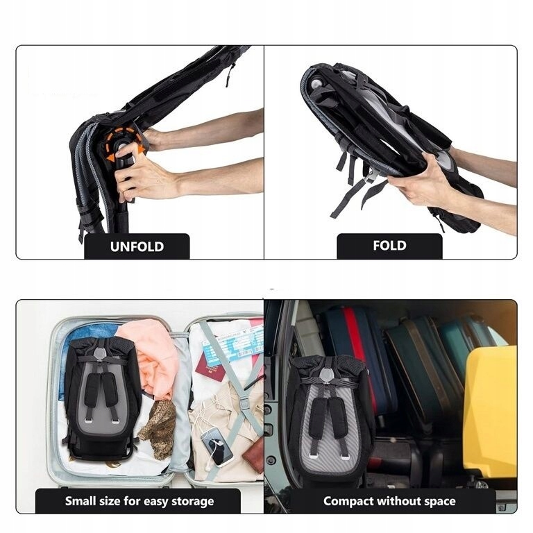 Він складається з розміром невеликого рюкзака, практично рівного. Його можна носити, як звичайний рюкзак, і, якщо необхідно, перетворити на дитячий носій. Дуже швидке складання та складання.