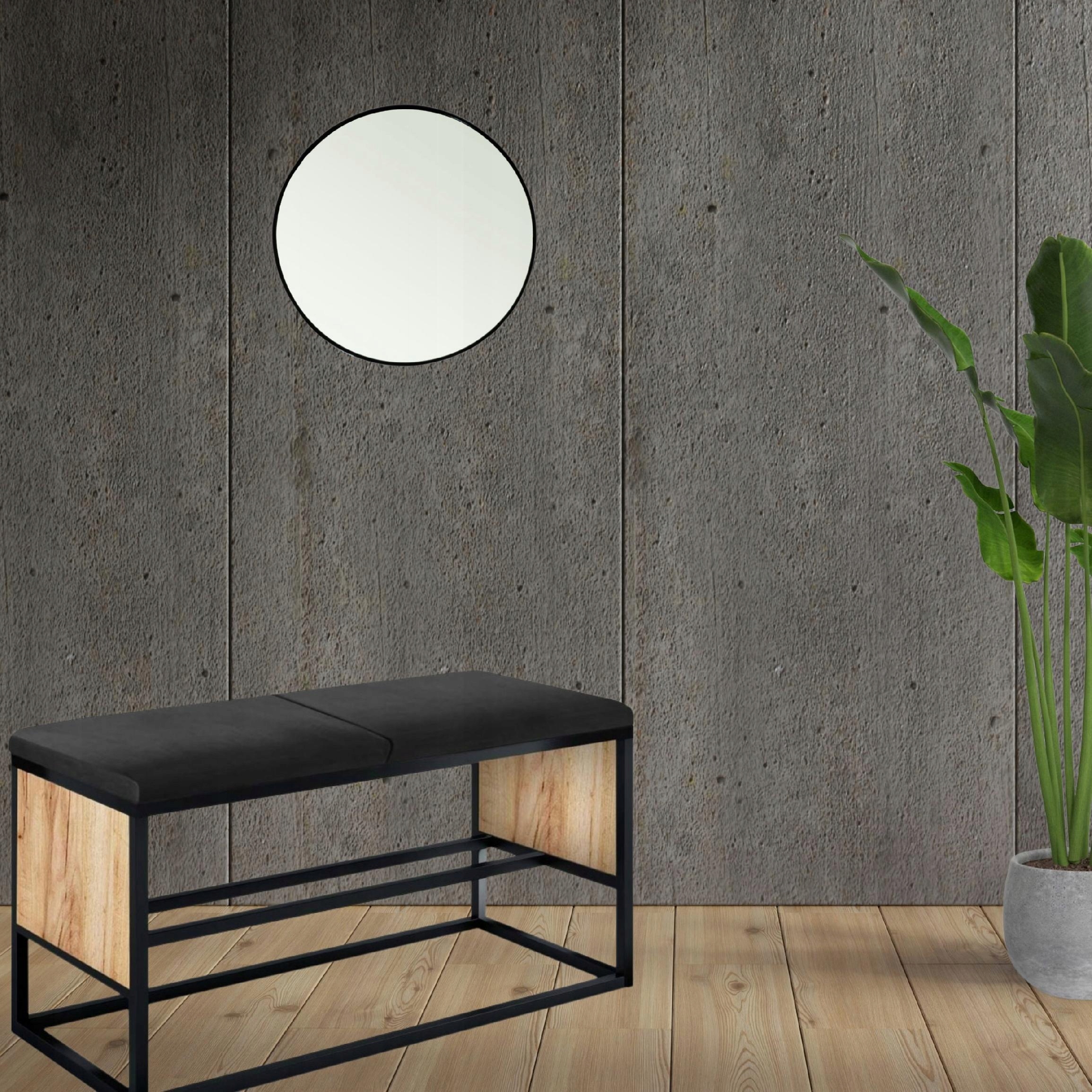 Шафа для взуття з сидінням Лофт - це сучасне та оригінальне рішення для людей, які хочуть створити неповторне облаштування свого залу. Металевий каркас шафи для взуття колір чорний матовий > та оббиті високоякісною оксамитовою тканиною сидіння підкреслюють індустріальний b> характер і зачаровують простою формою. Під сидінням можна помістити кілька пар взуття! Ви можете придбати додаткові панелі для набору, створивши індивідуальний набір власно потреби.