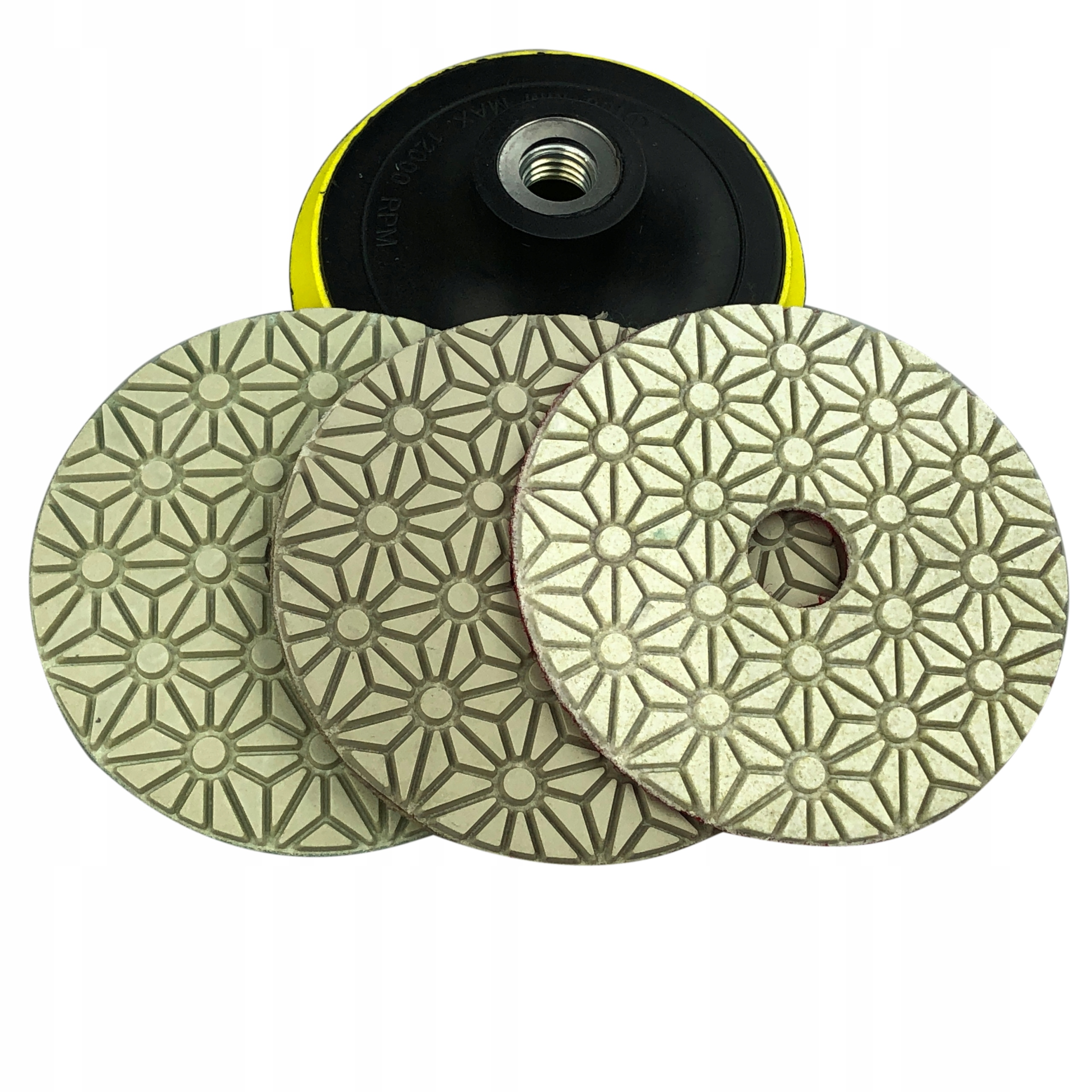 НАБІР З 3 АЛМАЗНИХ ПОЛІРУВАЛЬНИХ ДИСКІВ, 3-Х СТАДІВНИЙ FI 100, ДЛЯ ПОЛІРУВАННЯ КАМЕНЮ, ГРАНІТУ + ПЛАСТИКОВА РУЧКА З ПІНОРОЛОМ