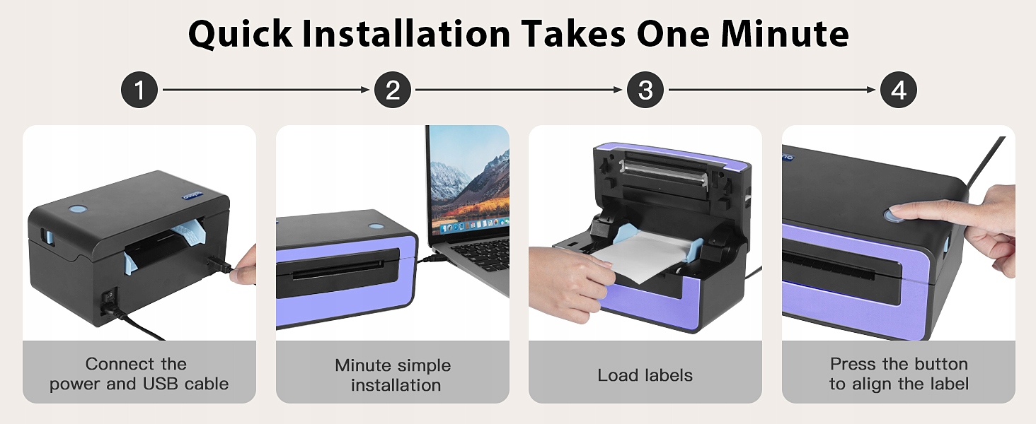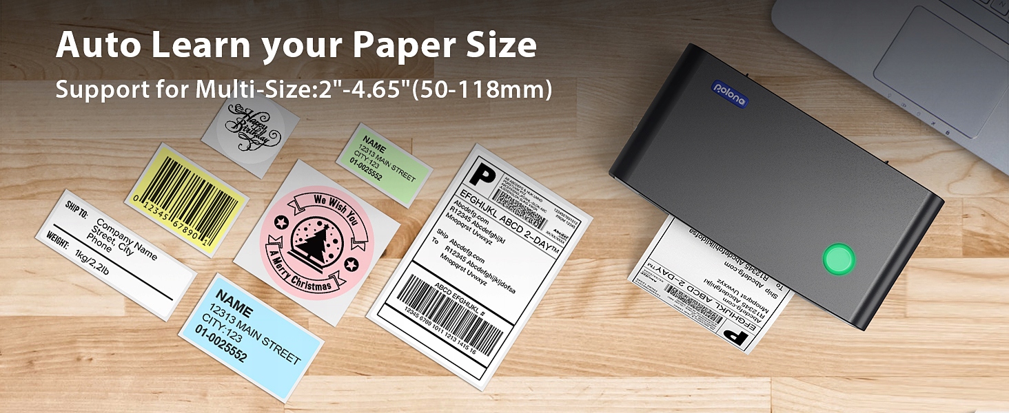 Принтер мітки автоматично регулює положення ретельно, оснащений функцією інтелектуального повернення паперу, автоматично фіксує мітки та підтримує ширину мітків у діапазоні від 1,57 дюйма (40 мм) до 4,65 дюймів (118 мм), весь процес швидко і легко. Сторінка доступна в різних розмірах: 4 "x6", 3 "x2", 3 "x1", 2 "x1", 2-5/16 "x 4", 2,25 "x1.25", а також 2-дюймові круглі етикетки.