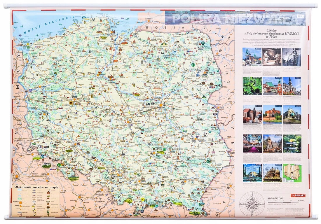 POLSKA NIEZWYKŁA 1:715 000 MAPA ŚCIENNA DLA DZIECI DEMART