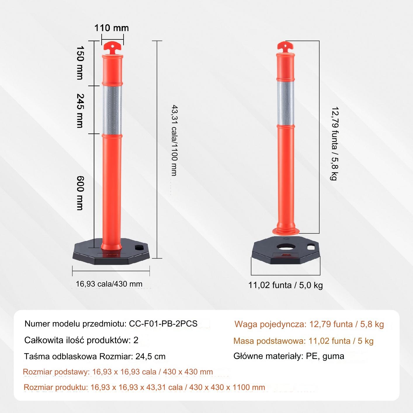 Кожен стовп має міцну гумову основу розміром 110х43 см, що гарантує стійкість у складних умовах. Завдяки цьому ви можете бути впевнені, що вони не перекинуться навіть при сильному вітрі.