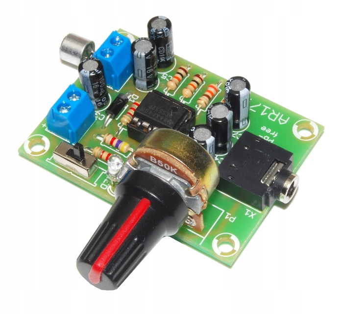 У модулі використовується малошумливий операційний підсилювач NE5532. Підсилення регулюється за допомогою обертового потенціометра. Система має світлодіодний індикатор, який вказує, що систему правильно підключено до джерела живлення.