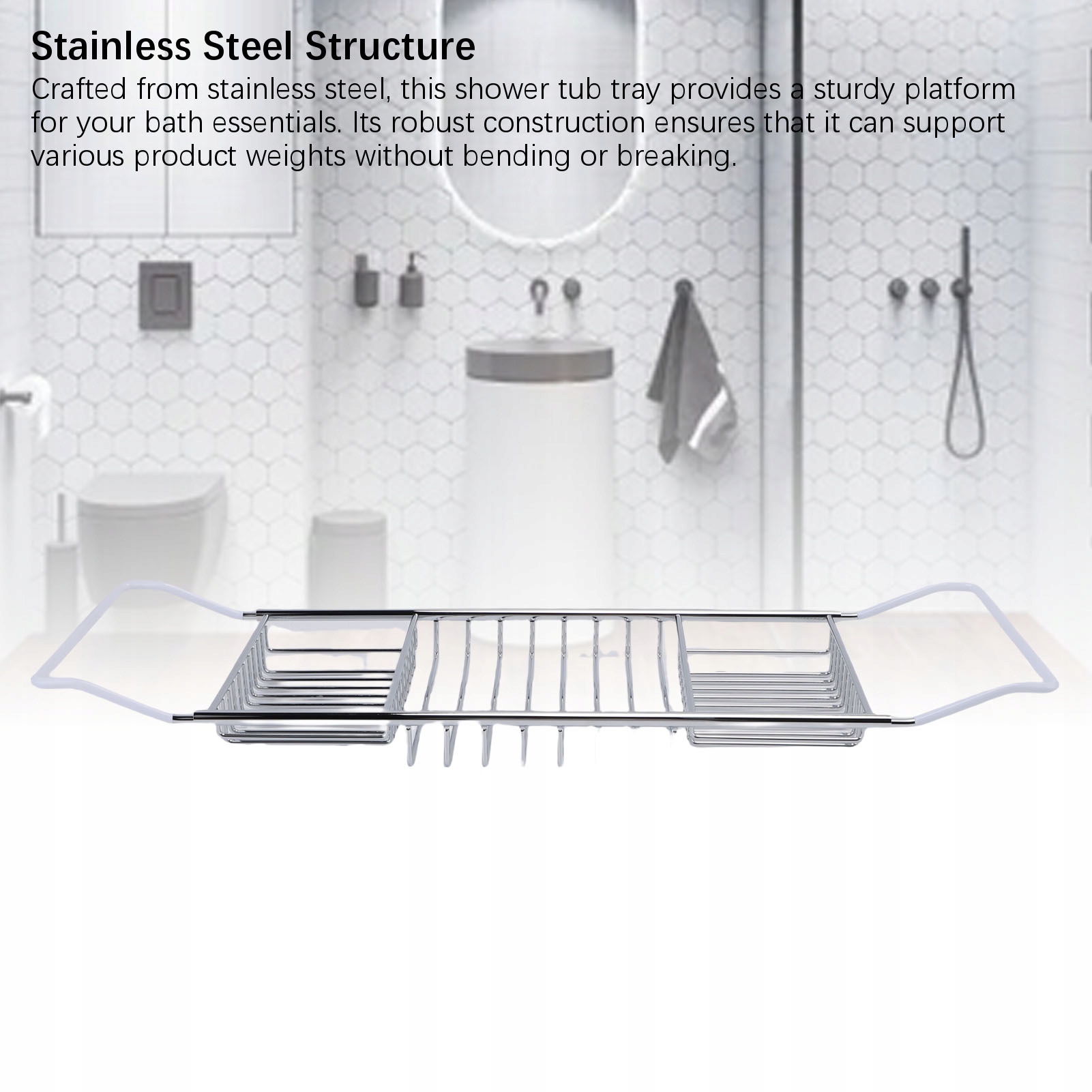 2. Регульована структура довжини: оснащена розширеною конструкцією, цей такт, адаптується від 63,5 см до 97,5 см, що робить його достатньо універсальним, щоб відповідати різним розмірах і форм ванни.