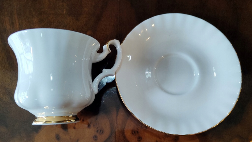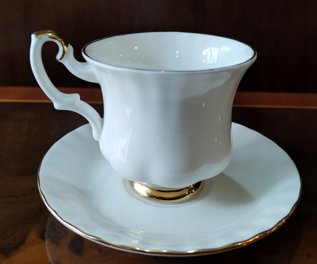 Предметом аукціону є старовинна чашка з блюдцем для англійської компанії ROYAL ALBERT, серія Val D'or. Незважаючи на час, стан порцеляни дуже хороший - без пошкоджень. Набір радує чарівними кольорами та вишуканою формою.