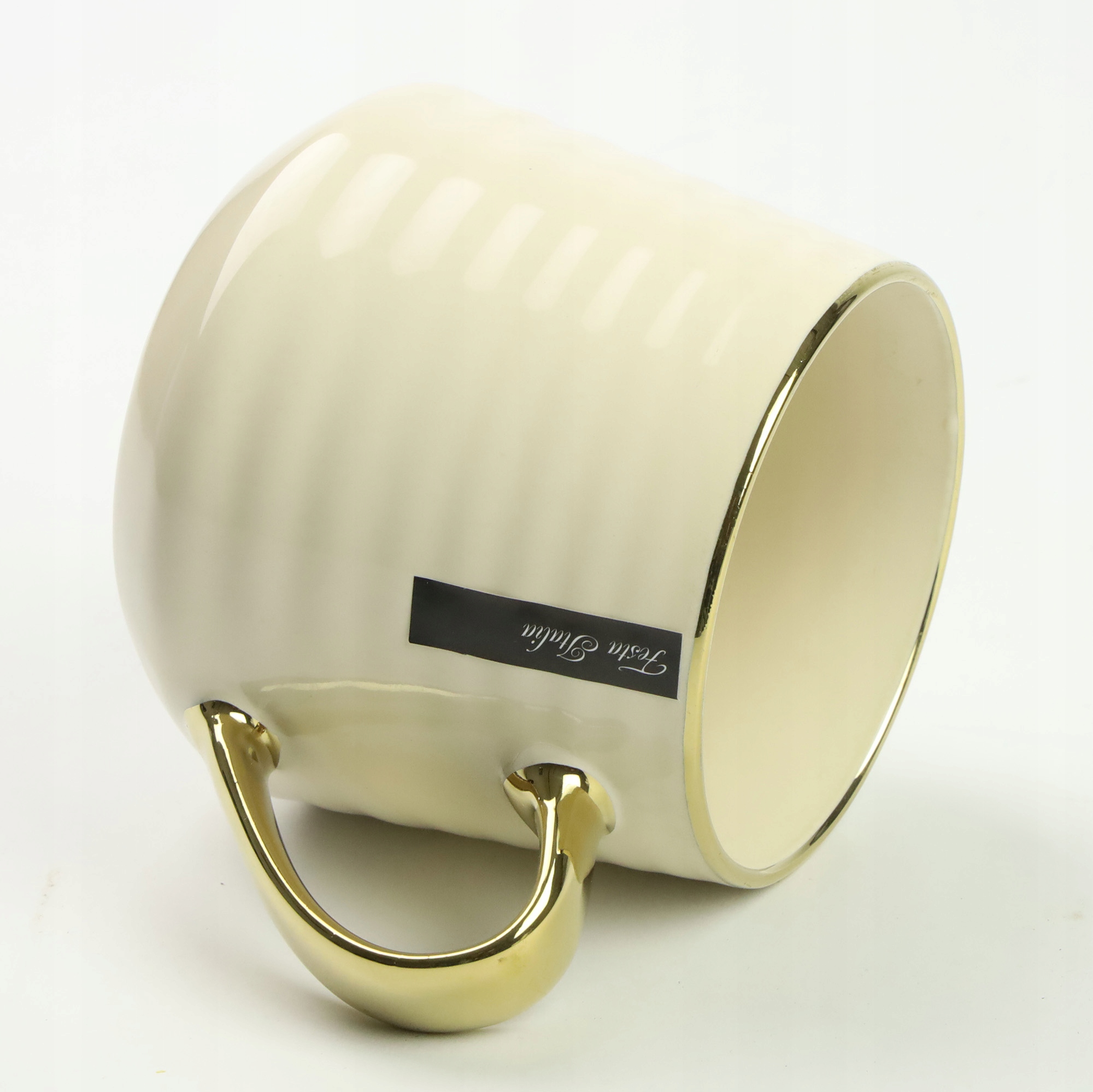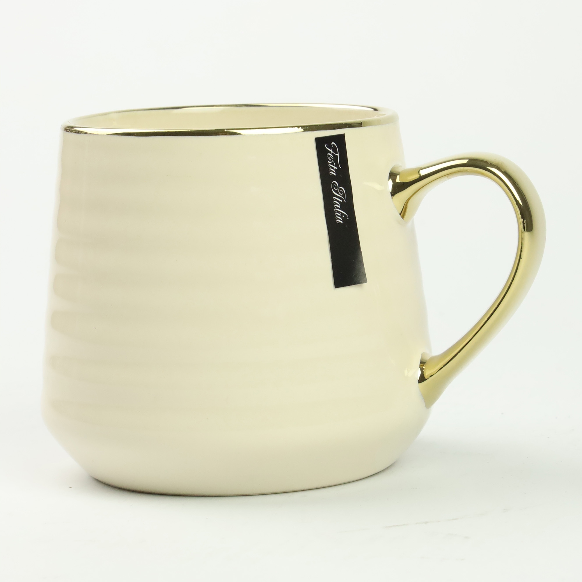 Порцелянова чашка з бежевим чаєм із золотим вухом 570 мл