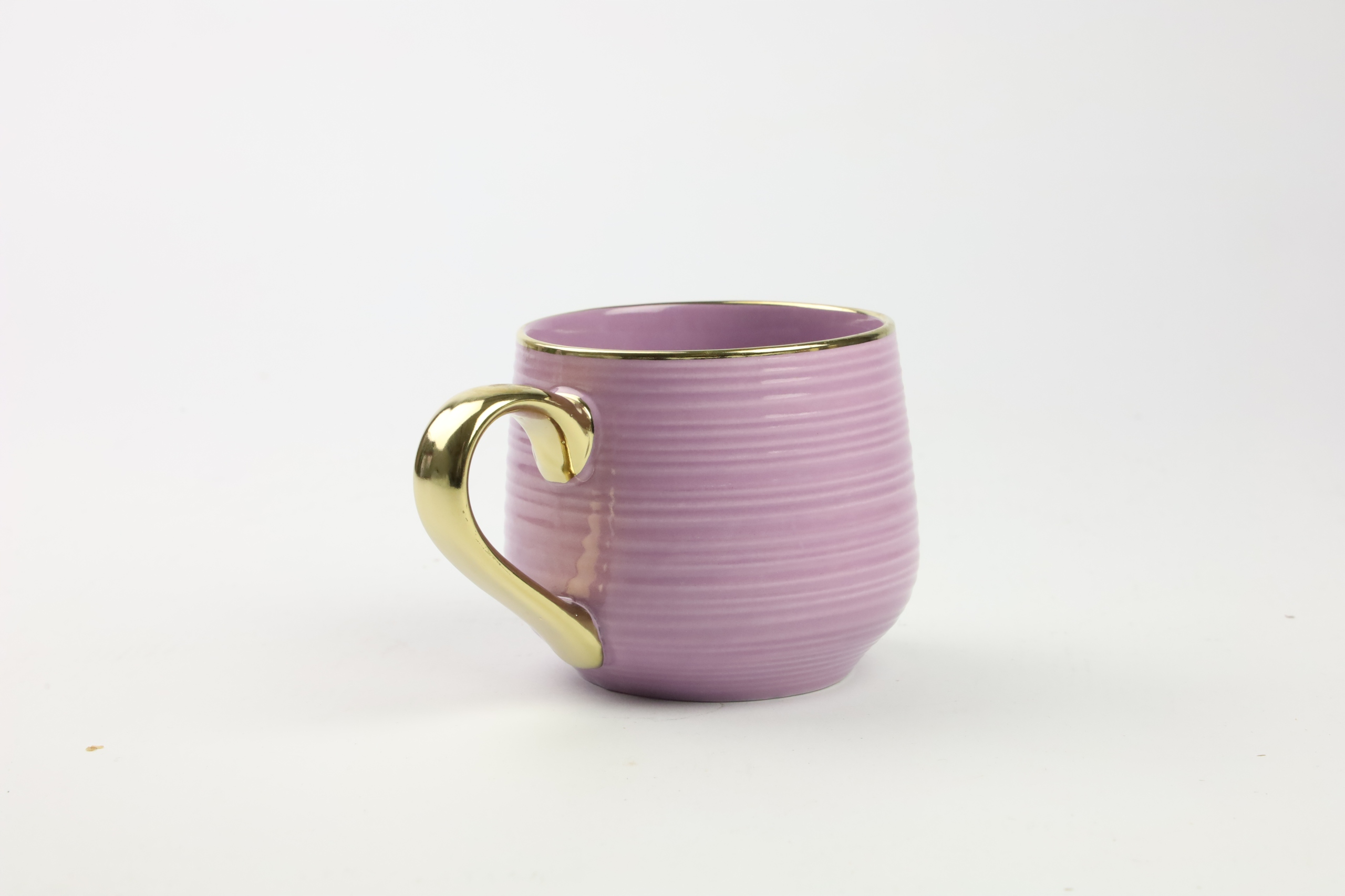 Порцелянова кавова чашка фіолетовий чай із золотим вухом 400 мл