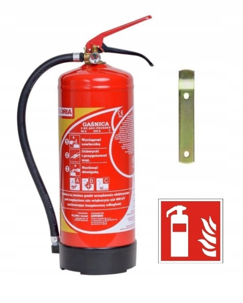 Найефективніший порошковий вогнегасник 6 кг на польському ринку, з вішалкою, призначеною для гасіння пожеж груп: ABC