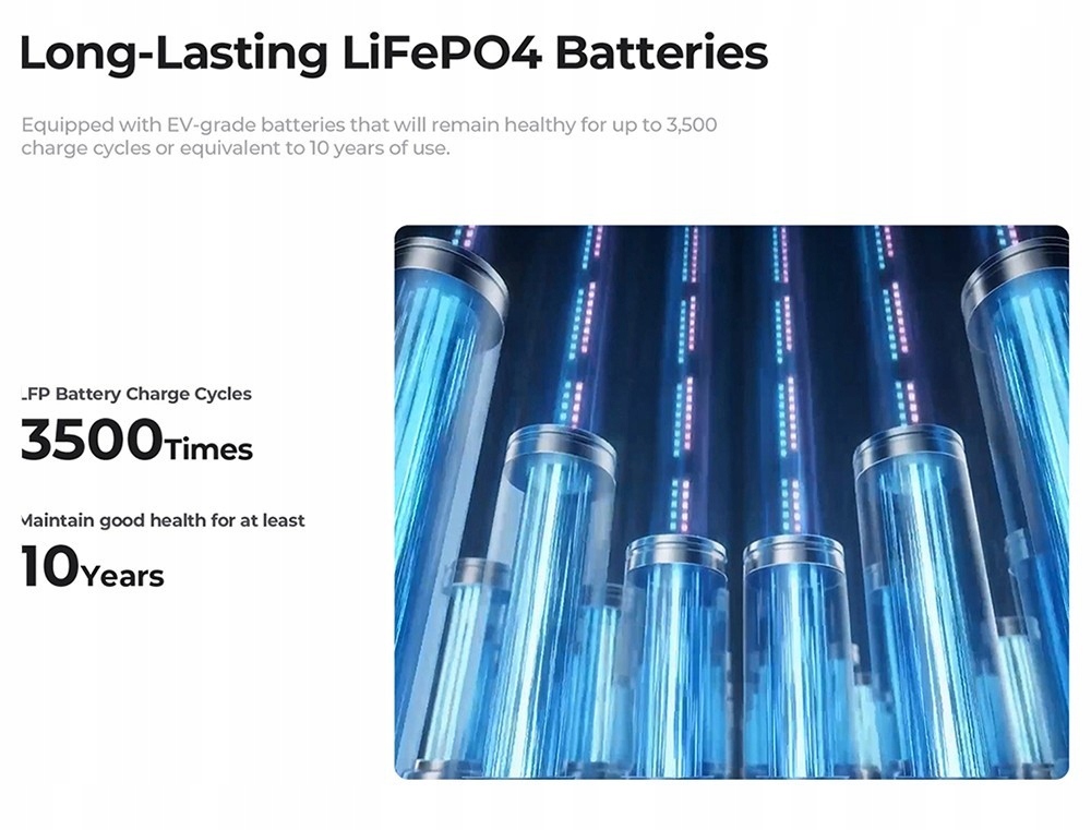 - Акумулятори в EV батареї високого класу, які залишаються справними до 3500 циклів зарядки або 10 років використання.