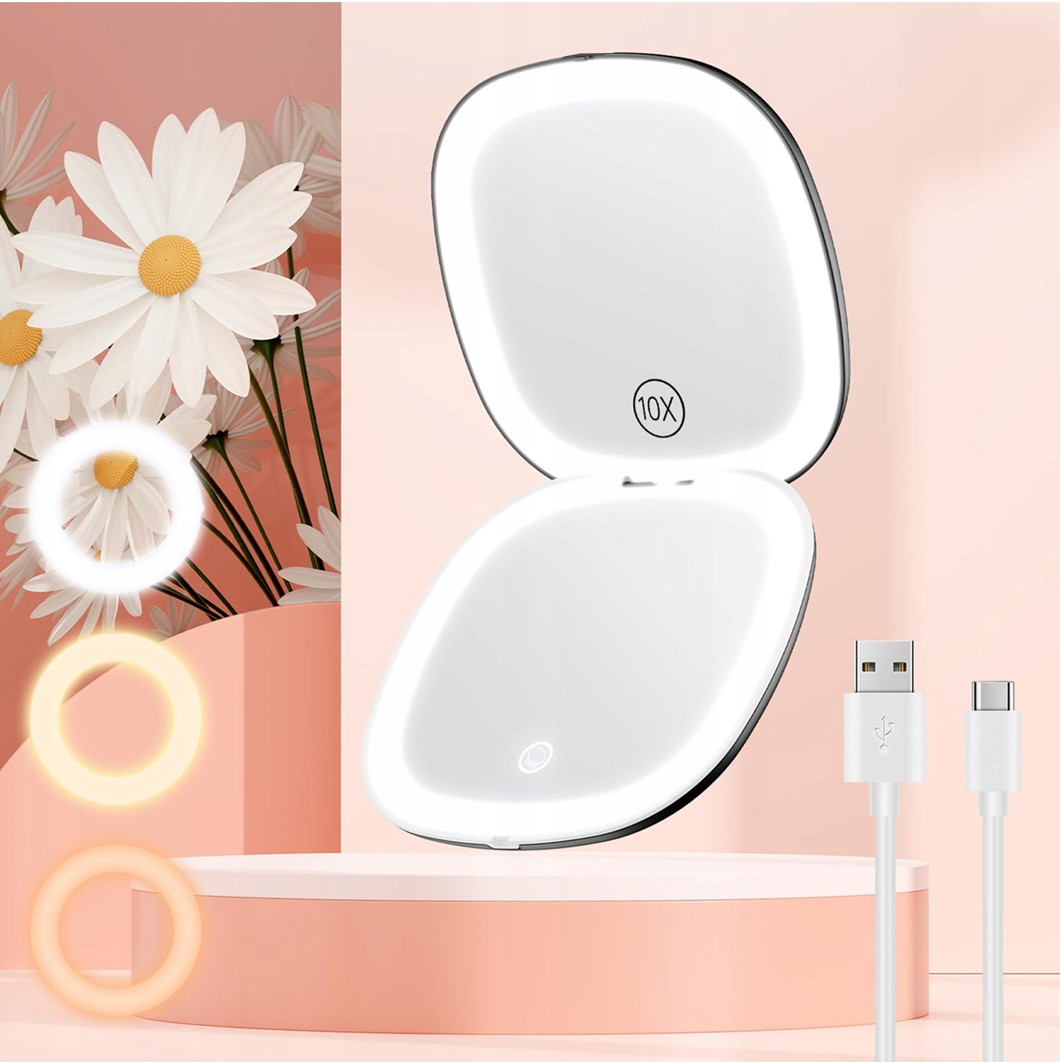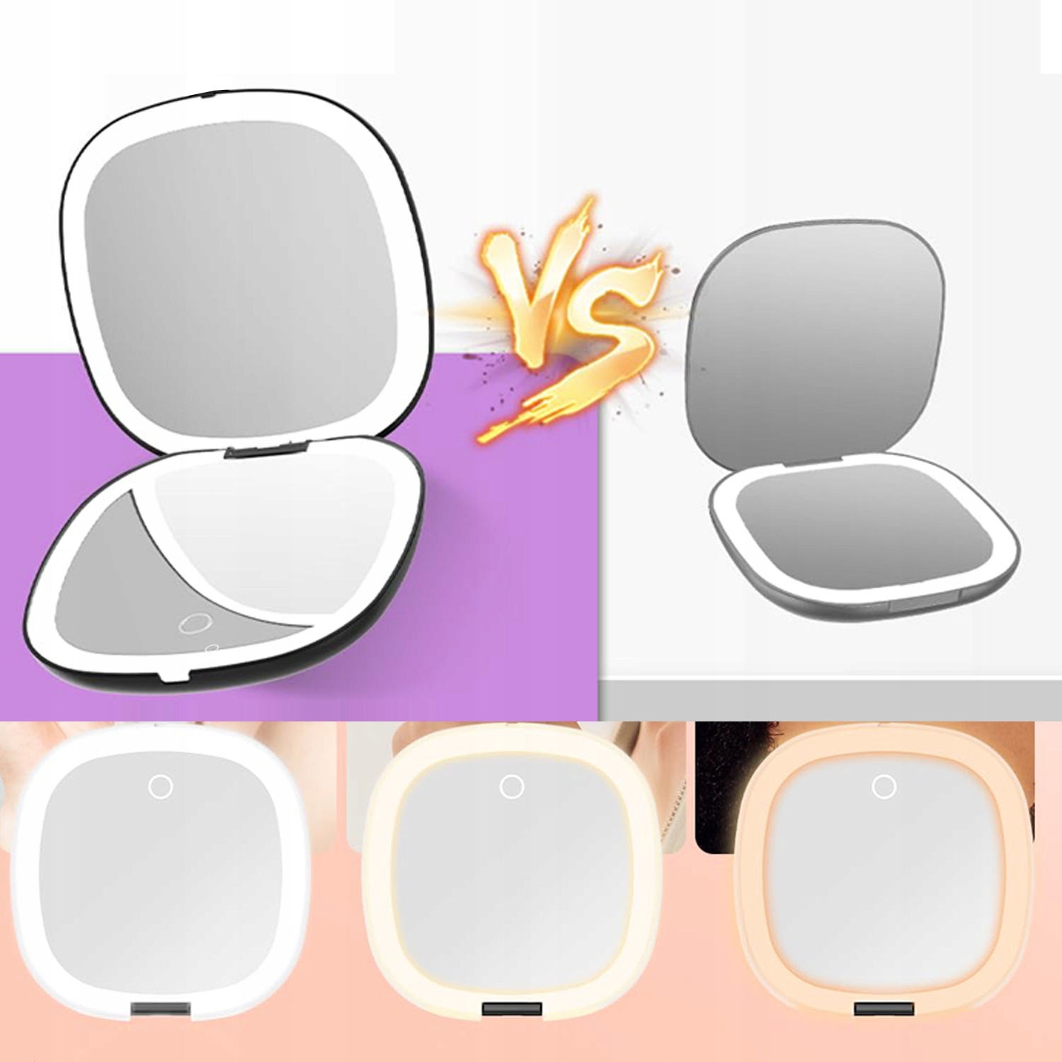Наше портативне, компактне дзеркало оснащене трьома різними режимами освітлення: білого світла, теплого світла та денного світла. Просто натиснувши кнопку, ви можете вибрати оптимальне освітлення макіяжу, будь то на роботу, вечірню вечірку чи щоденну гала. Довге натискання кнопки дозволяє регулювати рівень яскравості відповідно до ваших уподобань.