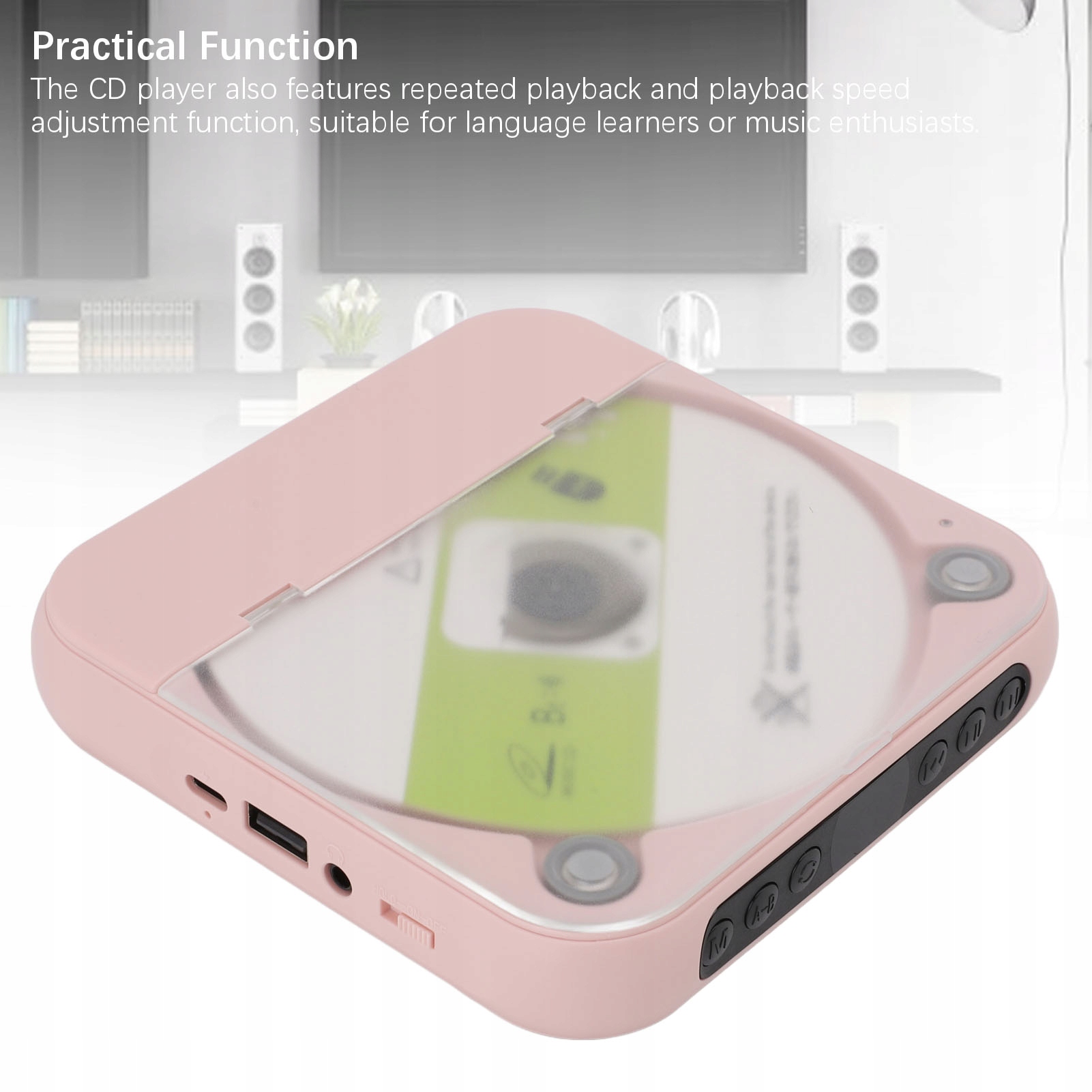 4. Компактний і світлий: CD -програвач компактний і легкий, ви можете насолоджуватися улюбленою музикою CD, під час фізичних вправ, в машині або під час подорожі. Практична функція: CD -програвач також містить повторну функцію відтворення та регулювання відтворення, що підходить для студентів мови чи любителів музики.