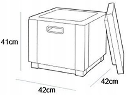 - Розміри (з кришкою): 42 x 42 x 41 cm (довжина x ширина x висота)