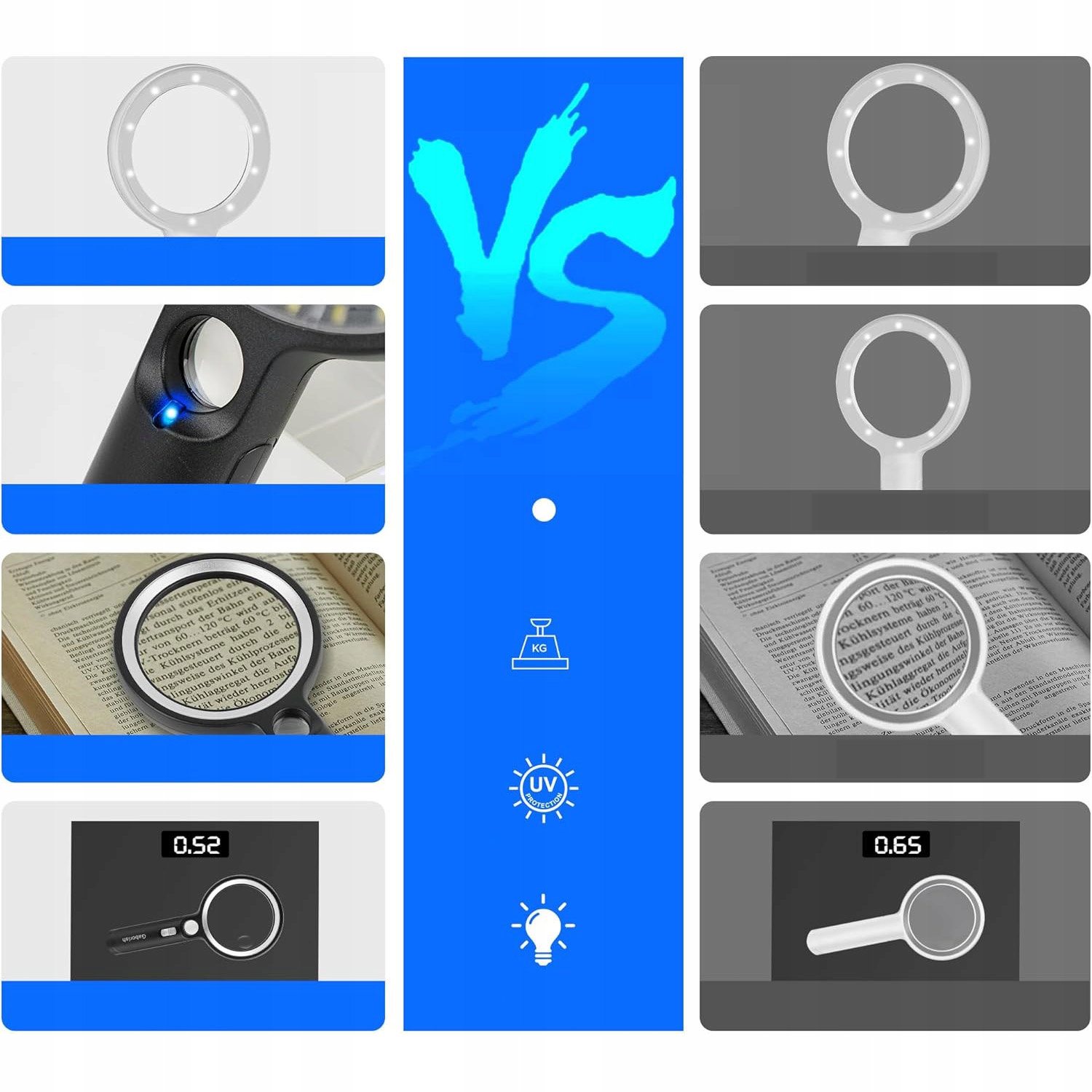 🔎🔎 освітлений лунок, 10x, 20x, 45x, ручне освітлене лупи, луна з 30 світлодіодами та 1 УФ -лампа, журнал для читання, огляд 🔎🔎