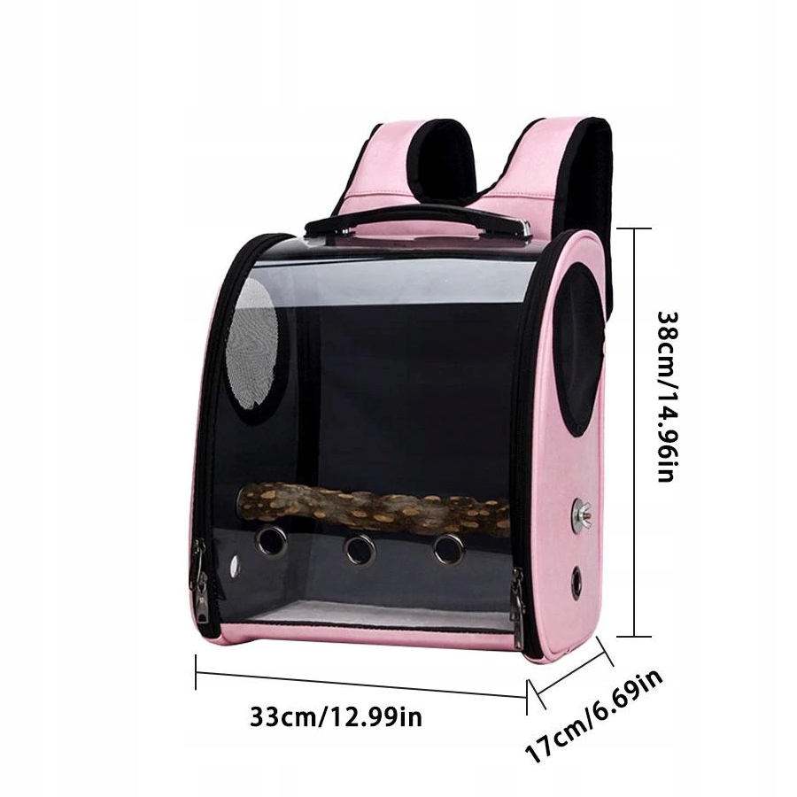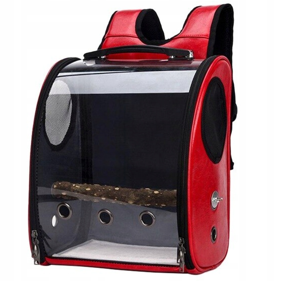 рюкзак, імітує прозору клітку для вашого папугу, додатковою перевагою є палиця, на якій птах може вільно сидіти під час транспортування. Широкий кут погляду знижує рівень стресу птаха