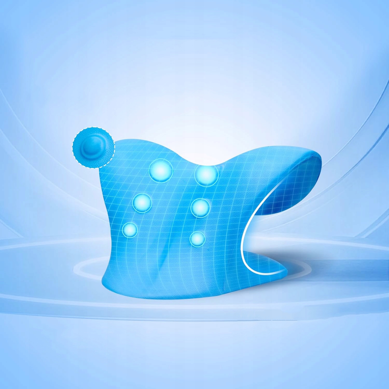 - Ергономічна конструкція, цей шийний тяговий пристрій підходить до кривизни шийного відділу хребта, а численні точки масажу спрямовані на ділянки шиї та нижньої голови, розслабляють м’язи та декомпресія тиску.