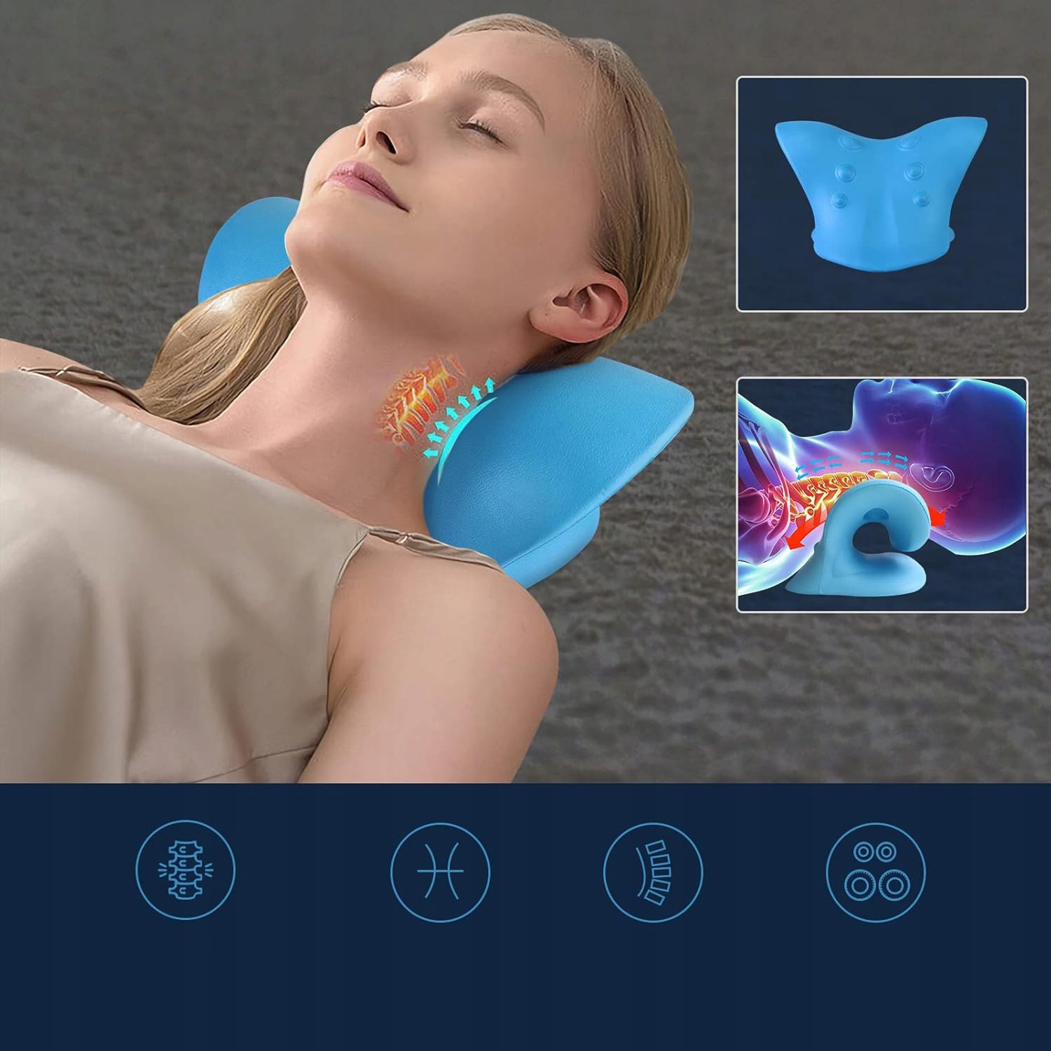 ✔ ✔ 【просте та ефективне фізичне рішення】: полегшило шию всього за 10 хвилин. Це допомагає відновити правильну кривизну шийного відділу хребта внаслідок постійного використання. Тяга шиї може допомогти регенерувати після напруги та стресових проблем, включаючи головні болі, травми шийного відділу хребта, біля основи черепа (наприклад, м'язових вузлів) та розладів тимчасових суглобів