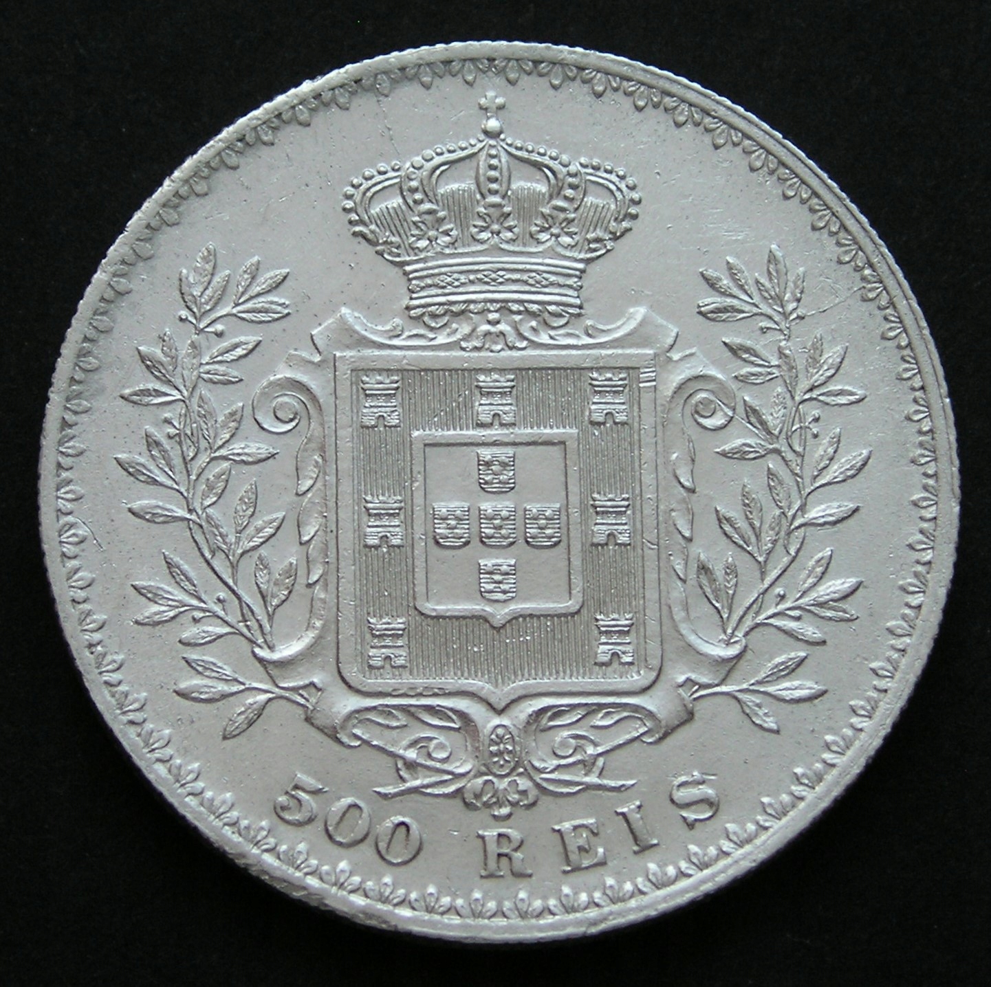 Portugalia 500 reis 1891 - król Carlos I - srebro