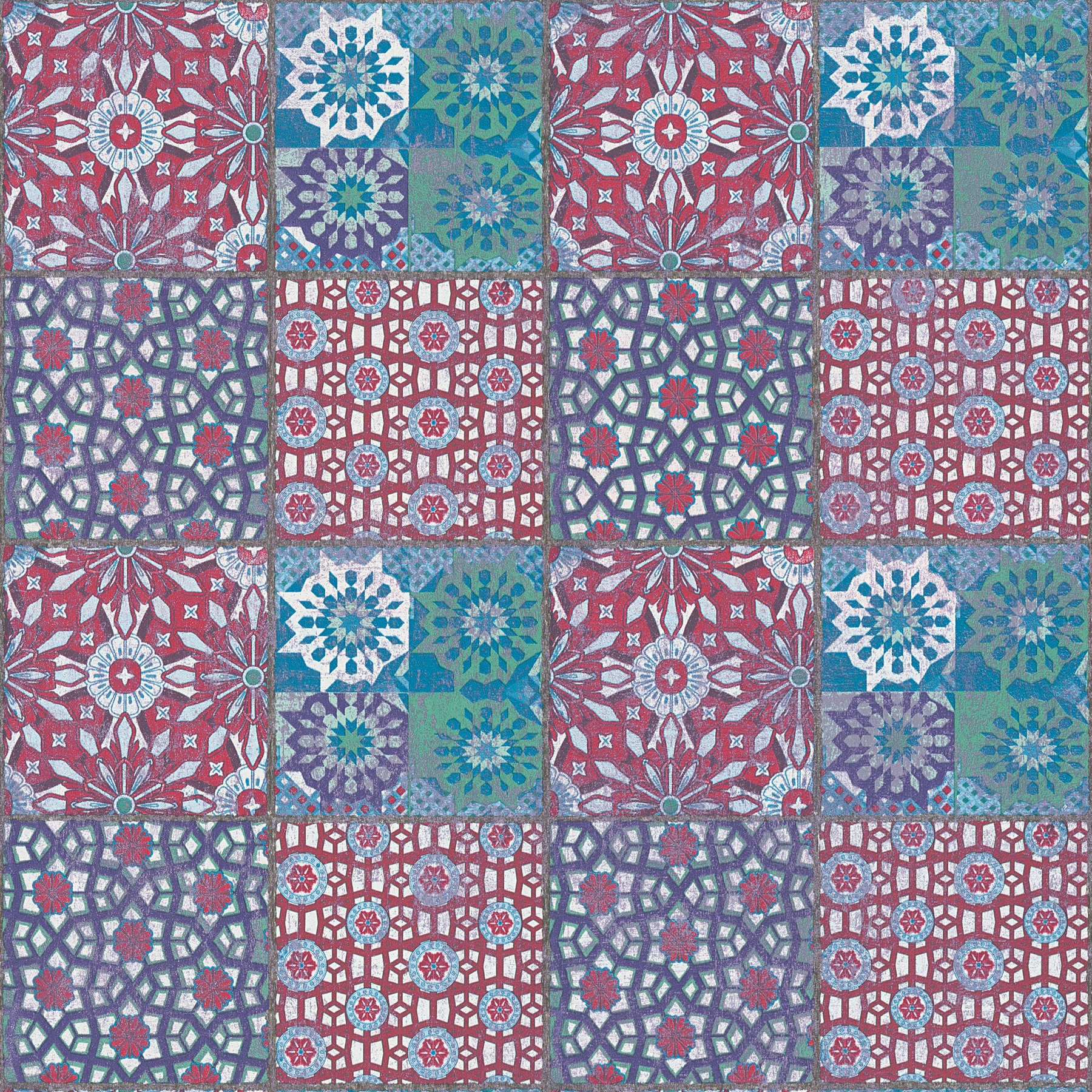 Сучасні шпалери з різнокольоровою португальською плиткою з високоякісного вінілу створюють тривимірний ефект на стіні
