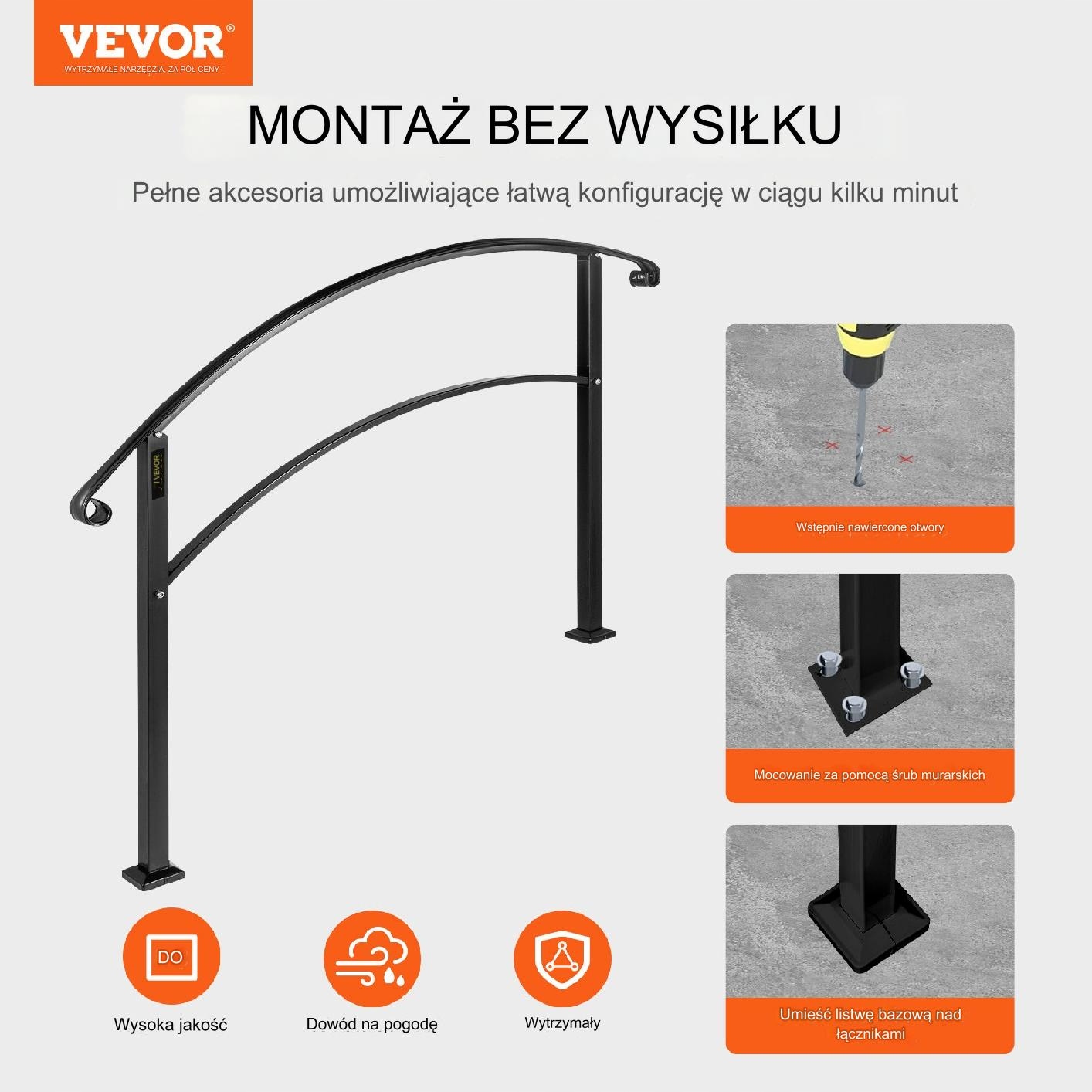 Наші поручники для бетонних сходів мають гладку, розфарбовану порошком поверхню в елегантному чорному кольорі, що дозволяє легко та швидко чистити водою або тканиною. Його класична, кучерява форма прекрасна і ніжна, що робить його більш декоративним і приверненням до очей. Окрім забезпечення захисту, порушення також прикрашає сходи.