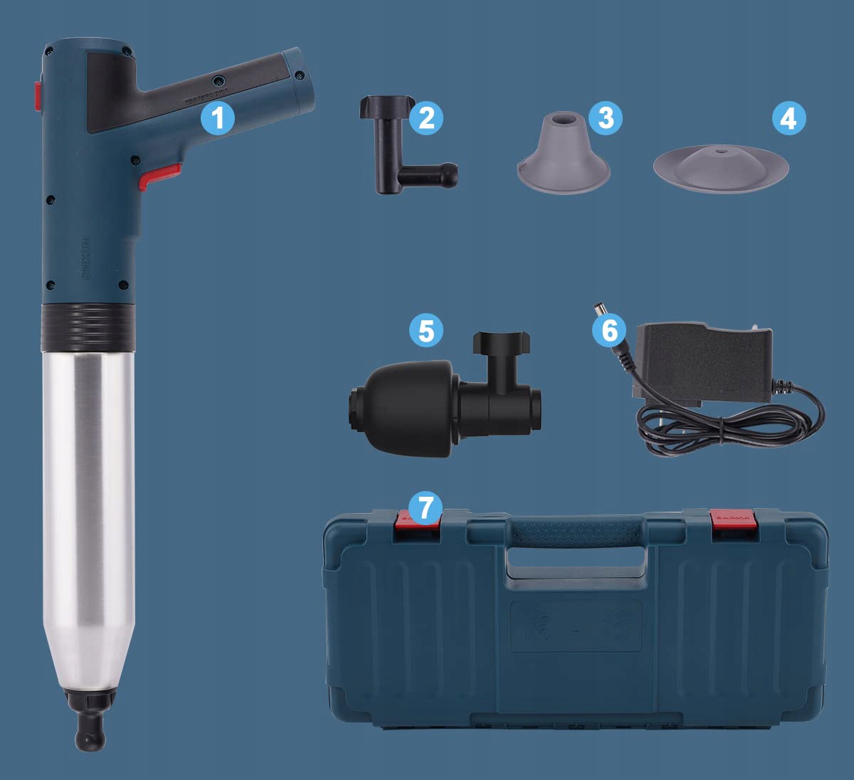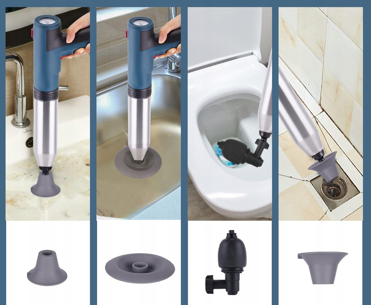 【простота використання】 Просто натисніть подушку безпеки, покладіть наконечник у фаршировану трубу і натисніть кнопку повітря, щоб очистити туалет або раковини. Операція дуже проста і інтуїтивна.