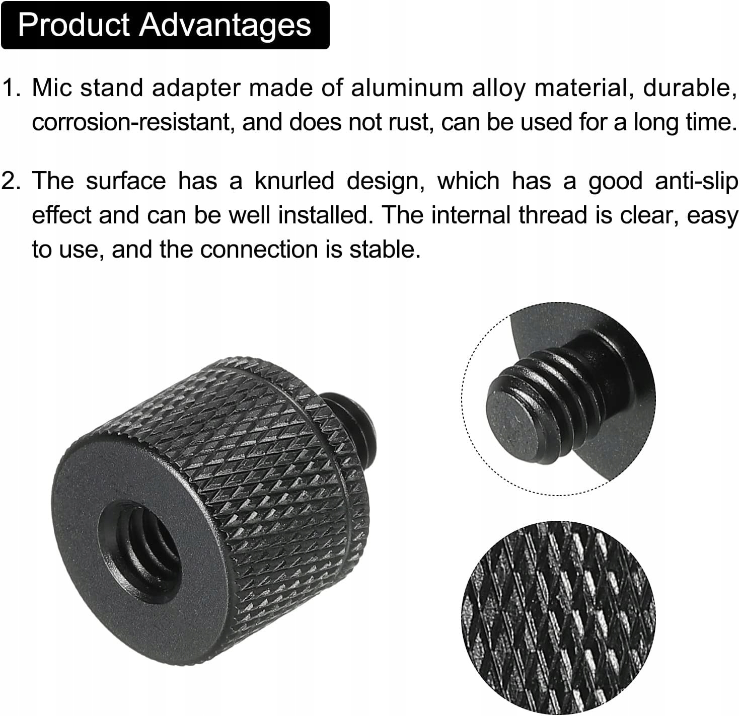 Додатковий опис : адаптер для штатива мікрофона в основному використовується для постійної установки Microphone штативів і підходить для більшості типів триптодів мікрофонів, камерас та штативів до записів. Матеріал: алюмінієвий сплав. Колір: Чорний. Висота тіла: 13 мм / 0,59 дюйма. Нитка: 1/4 чоловіків з самки до М6. Відстань нитки: 20 г х 1 мм (самка X -самець). Загальний розмір: 16 мм x 20 мм/0,63 x 0,79 "(d*h).